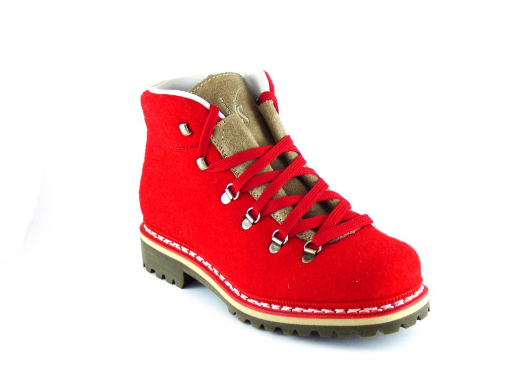 Ručně šitá italská obuv s jasným vzkazem: "zpátky k tradicím"! Originální vlněný horský design a styl obuvi tvoří především norský rám, tedy způsob připevnění horní části obuvi k podešvi s použitím lemu a dvou viditelných okrajů stehu. Jedná se o ručně vytvořený proces, který je navržen tak, aby izoloval nohu a současně nabízel flexibilitu a pohodlí. Plných 5 vrstev podrážky izoluje nohu od země: anatomická stélka z kůže, tužší deska z pravé kůže, lehká EVA pěna, která slouží jako tlumič nárazů, středová výztuha v EVA s dalšími tlumícími vlastnostmi a kvalitní protiskluzovou podešev.