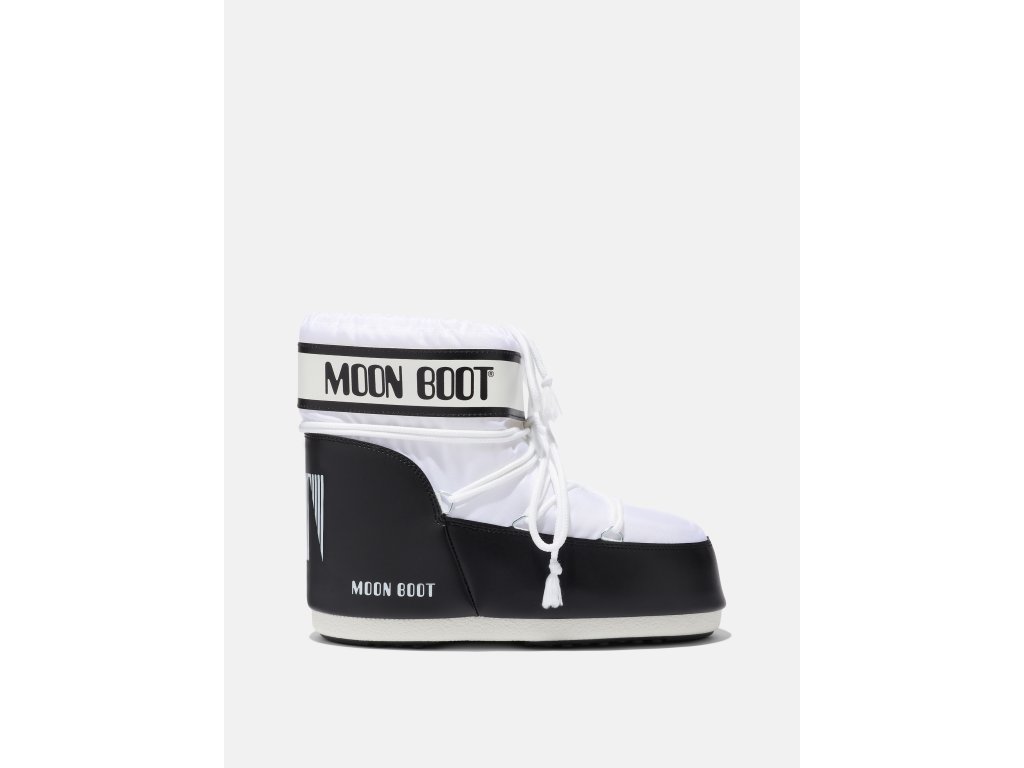 MB ICON LOW NYLON - WHITE je nízká verze ikonických sněhulí Moon Boot, která si zachovává typický futuristický design, ale v praktičtějším a každodenně nositelném provedení.