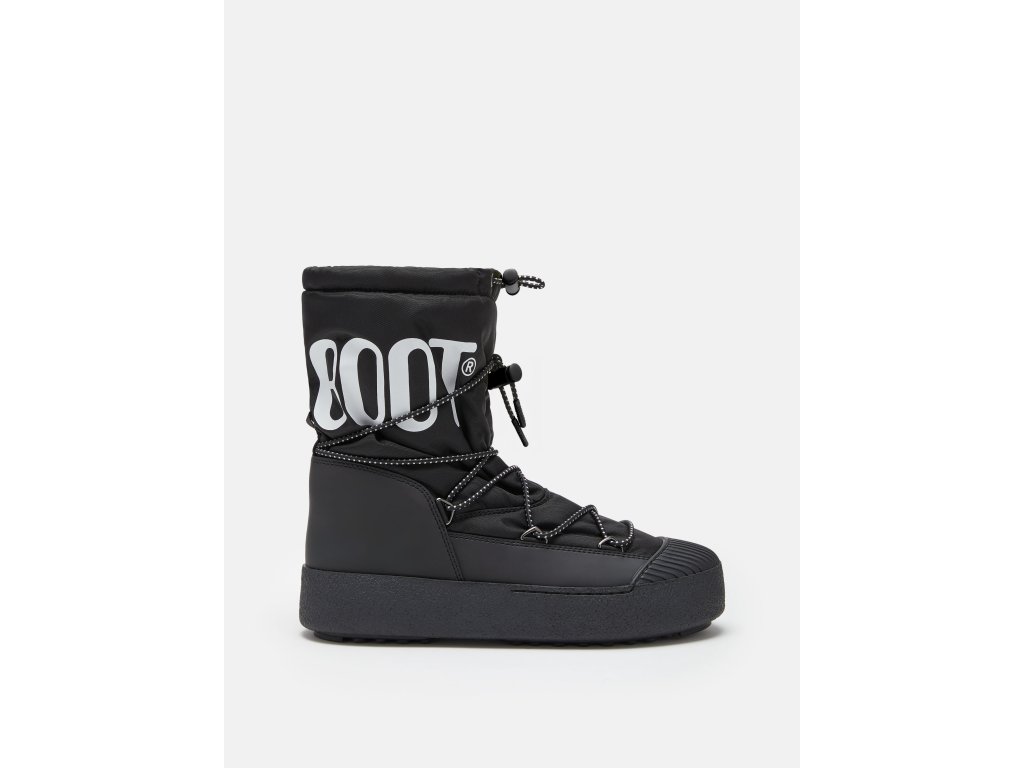 Protiskluzová TR podrážka: Stabilní krok na kluzkém povrchu. Stylový černý design s logem Moon Boot, nadčasový vzhled.