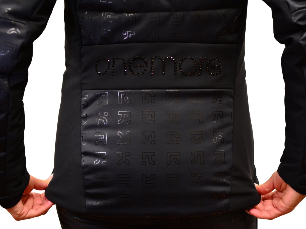 Každý detail černého loga tohoto oděvu OneMore je pečlivě a trpělivě ručně zpracován zkušenými řemeslníky. Díky exkluzivnímu výrobnímu procesu je každý kousek naprostým originálem, což dokonale odráží filozofii značky – spojení precizního designu, inovativního přístupu a špičkových materiálů.