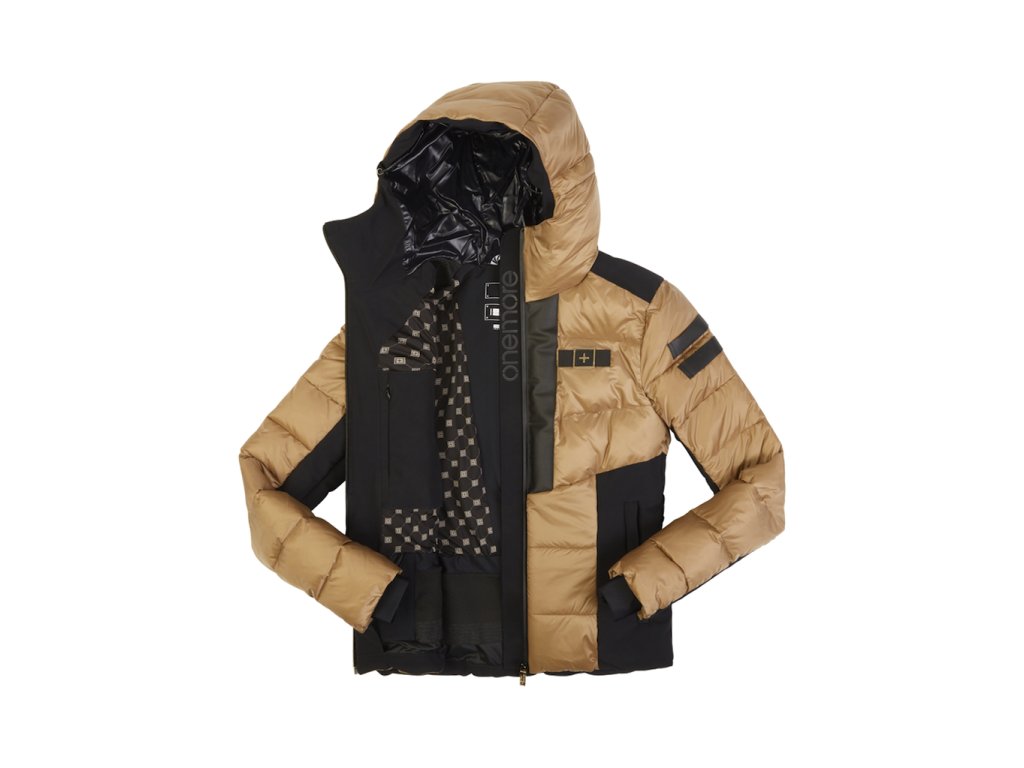 Materiál: dvakrát potažený nylon s PFAS-free vodoodpudivou úpravou, odolný proti větru a sněhu, doplněný o panely z IT 4-way stretch a ECONYL® pro flexibilitu a odolnost.