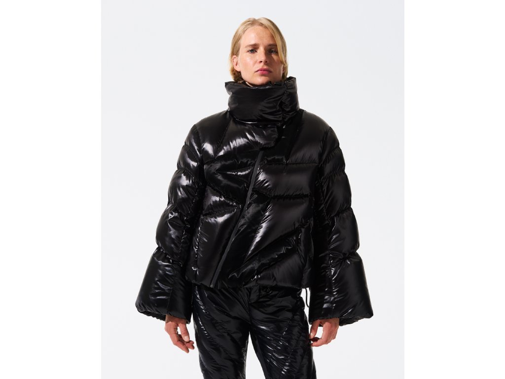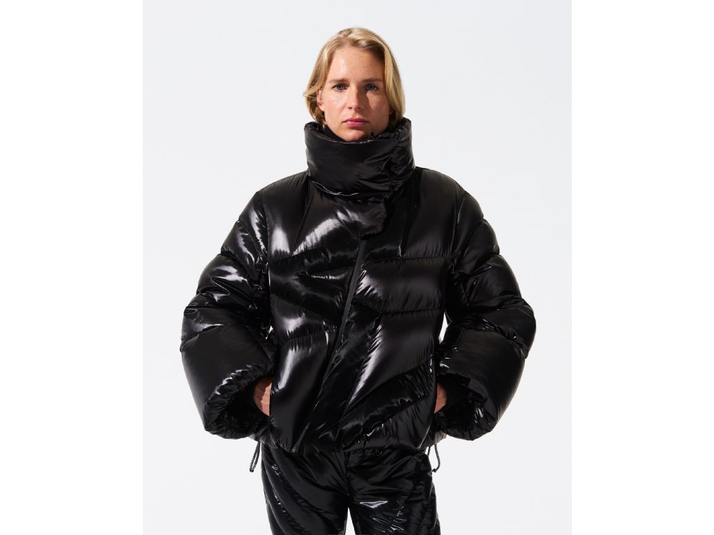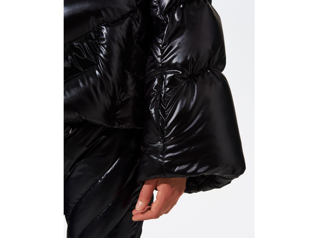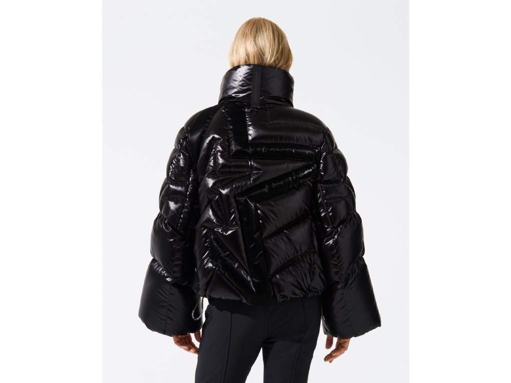 Dámská péřová bunda PERFECT MOMENT ARIEL SKI BOMBER JACKET v lehce oversize střihu dodává této bundě elegantně dynamický vzhled.
