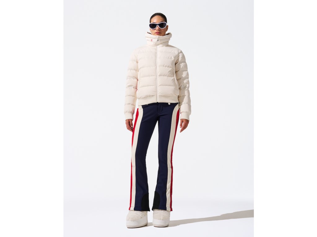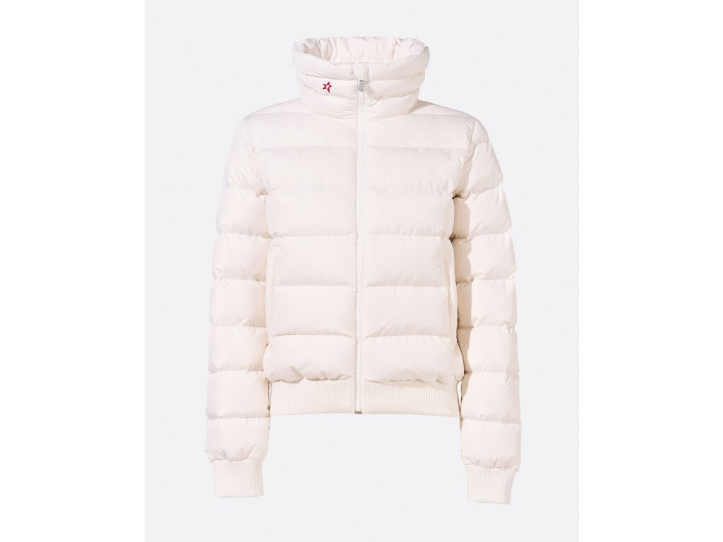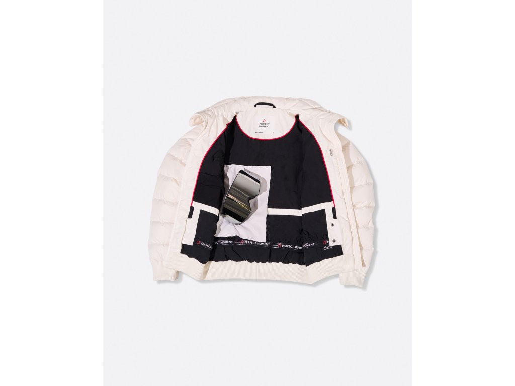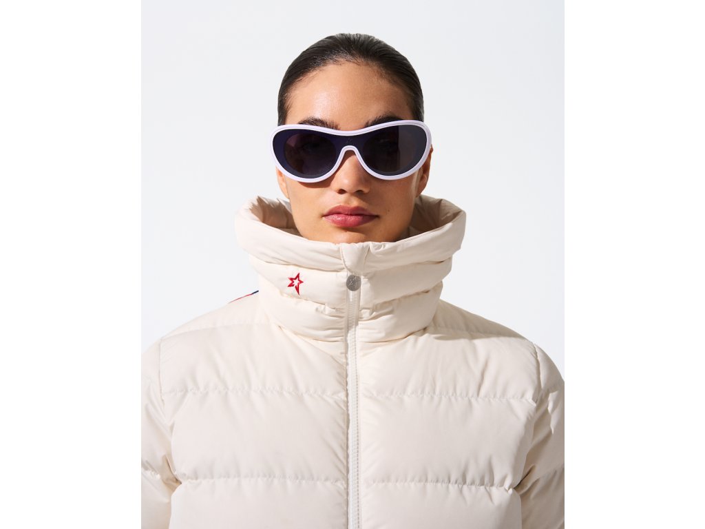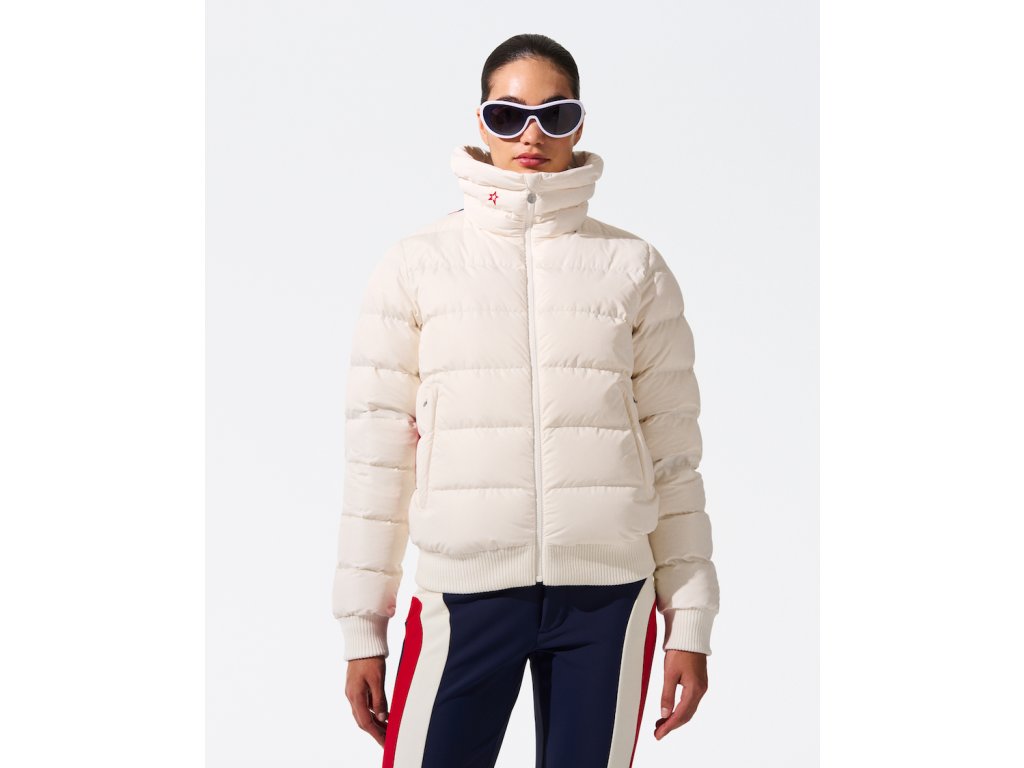 Teplá péřová lyžařská bunda PERFECT MOMENT SUPERSTAR JACKET, definuje master piece ve vintage stylu nejen svým jménem, ale i nápadným panelovaným designem a typickou prošívanou PM hvězdou na zádech.