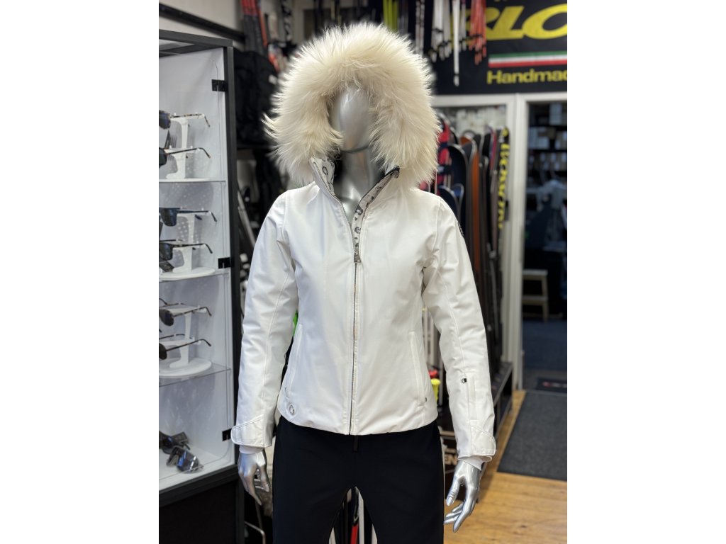 Sportovně elegantní dámská lyžařská bunda VIST AMELIA LEOPARD INSULATED SKI JACKET WHITE S LEOPARDÍM MOTIVEM, PRAVOU KOŽEŠINOU A SWAROVSKI KAMENY z kvalitních materiálů jako je čtyřsměrný streč a perfektním zpracováním, což je doménou značky VIST. Na levém rukávu je kapsa na skipas, v pase sněhový pás , manžety na rukávech a má odepínací kapuci. Prodyšnost g/m2/24h 10.000 Vodní sloupec mm 20.000.