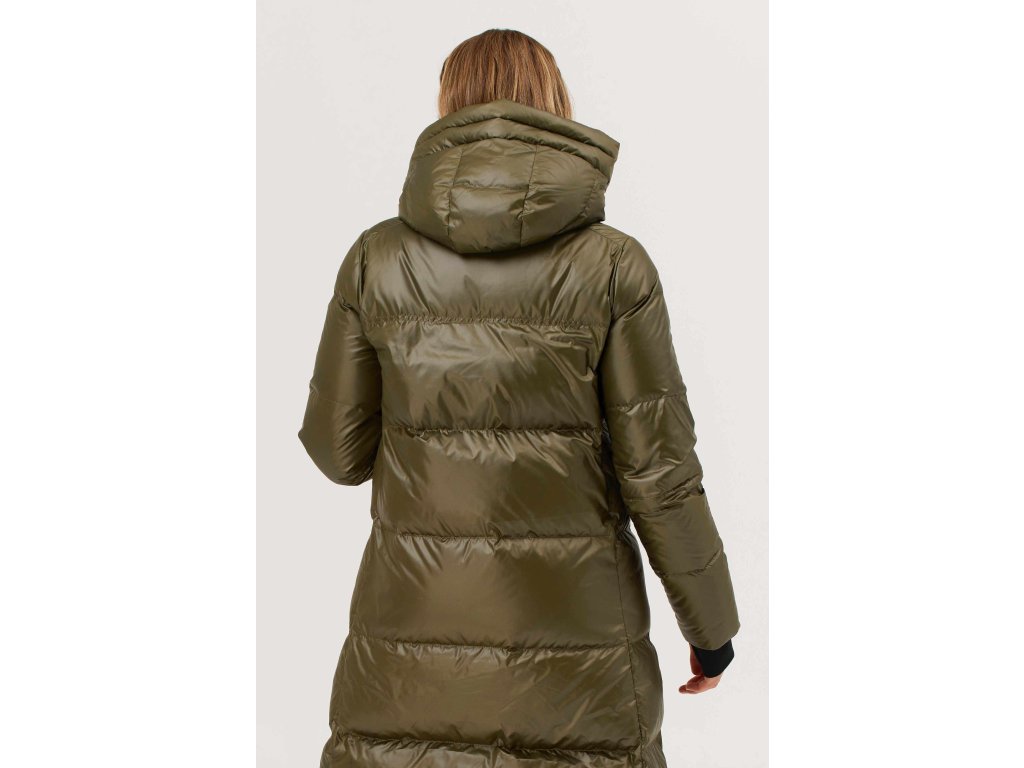 Dámský péřový kabát ke kolenům zajistí maximální tepelný komfort.