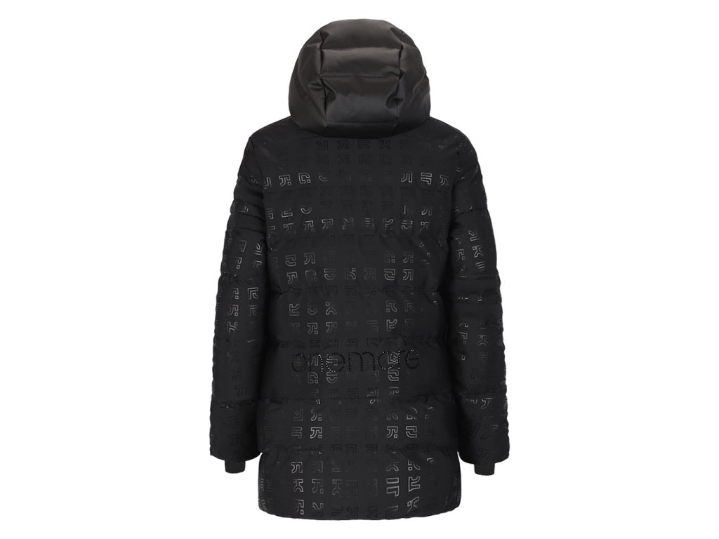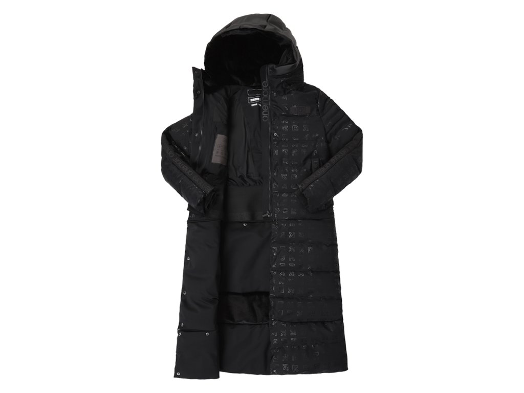 Celoplošný vzor Alfanero obsahuje frázi „We are explorers and we come in peace“ v abecedě OneMore. Jednotlivá písmena tón v tónu vznikají speciálním laminovacím procesem a vytvářejí jemný lesklý efekt – elegantní a nepřehlédnutelný. Nastavitelná kapuce a límec s vnitřní eko-kožešinou zajišťují komfort a ochranu proti chladu. Kabát nabízí 2 vnější kapsy a 3 vnitřní kapsy (1 s knoflíky, 2 síťované) pro maximální praktičnost. Elastické manžety, nastavitelný pas a elastický sněhový manžet zaručují perfektní střih a ochranu proti zimnímu počasí. Zipy YKK s krytem a reflexním logem OneMore zajišťují bezpečnost a detailní zpracování.