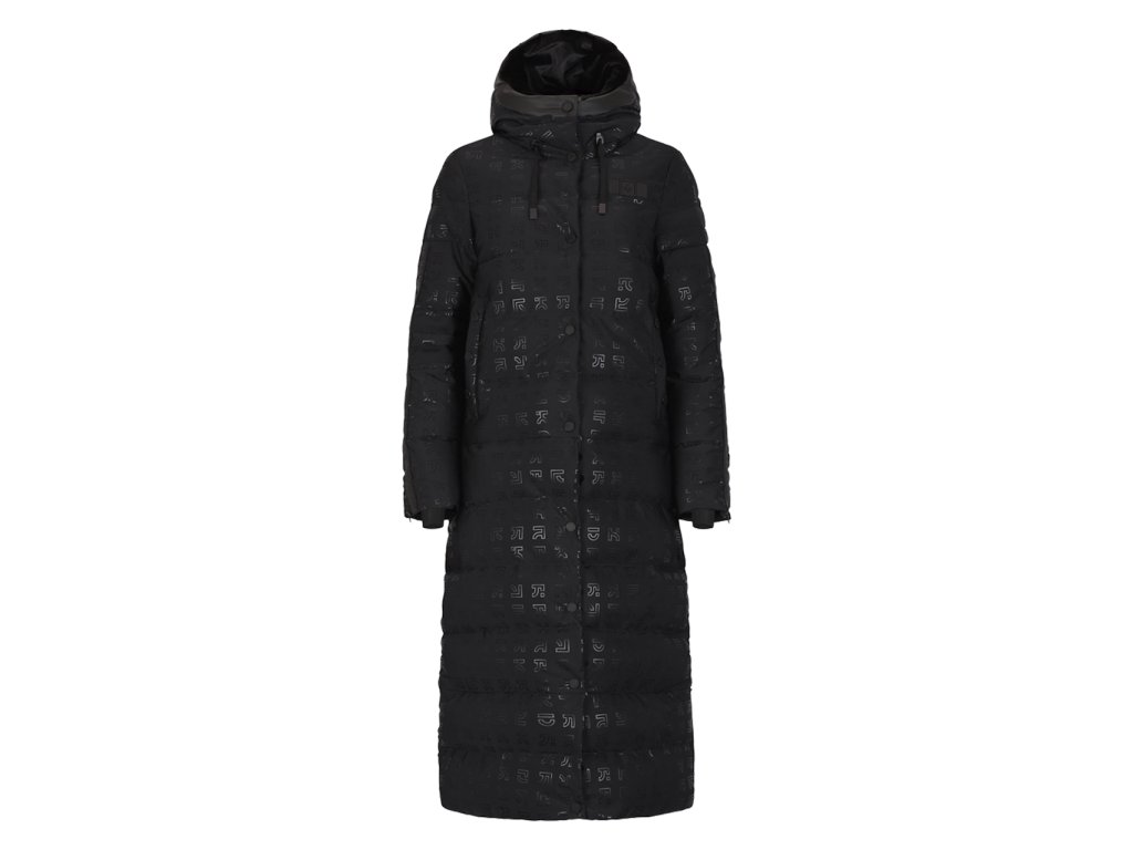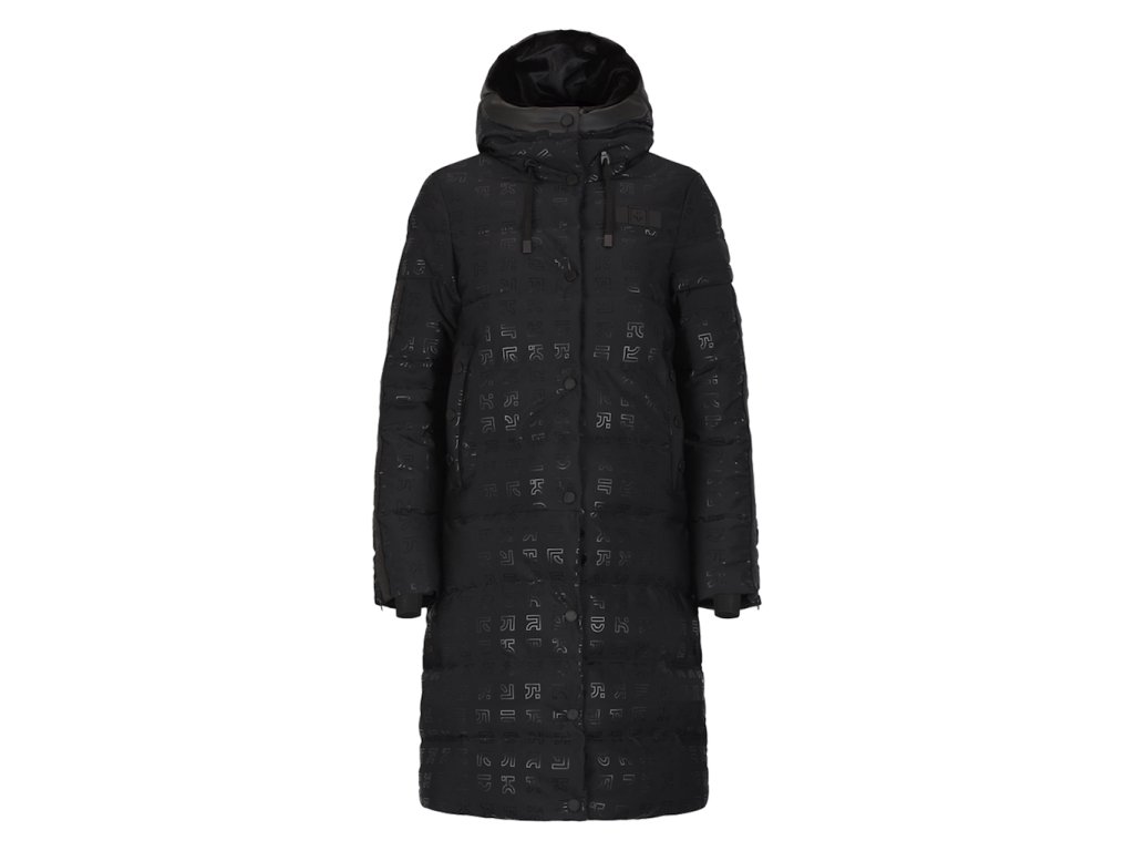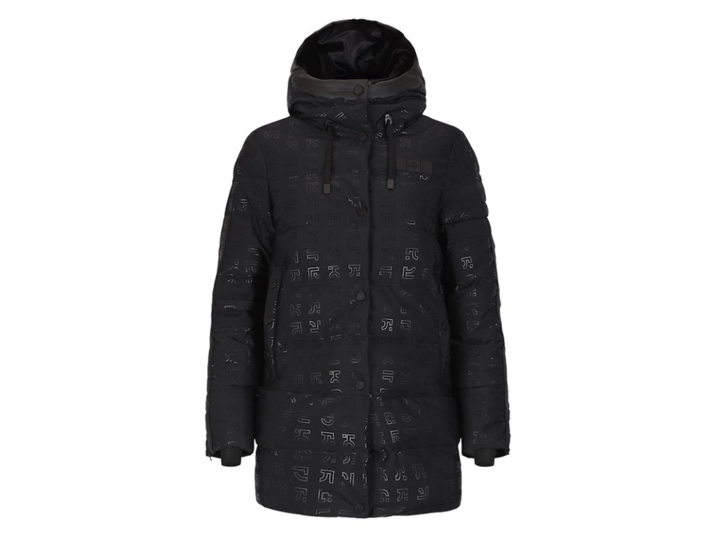 Výplň kabátu je 100% recyklovaná, vyrobená z PET lahví, čímž kombinuje teplo a udržitelnost. Manžety rukávů lze rozšířit pomocí skrytých zipů, odhalující kontrastní látku uvnitř – jemný luxusní detail. Použitý materiál IT 4-way stretchposkytuje dokonalou volnost pohybu a voděodolnost (20 000 mm / 10 000 g/m²/24h). Součástí kabátu jsou prvky z ECONYL® a AppleSkin, které podtrhují ekologickou a inovativní koncepci oděvu.