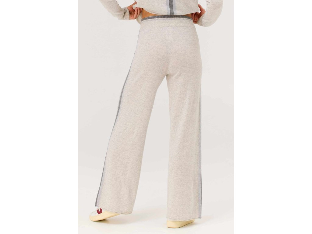 Měkké a hřejivé dámské tepláky v krémové barvě s lurexovým lemem pro stylový relax po lyžování.