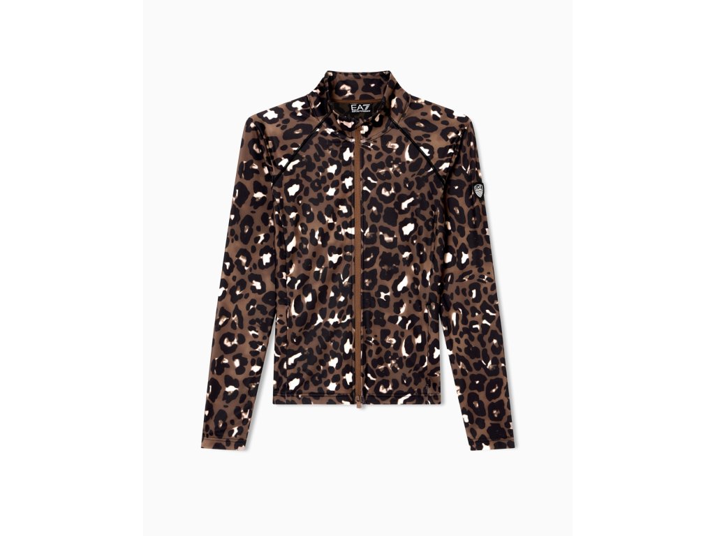 EA7 SKI WOMAN KITZBUHEL POWERSTRETCH TECNICAL TOP FULL ZIP FANCY BROWN ANIMALIER