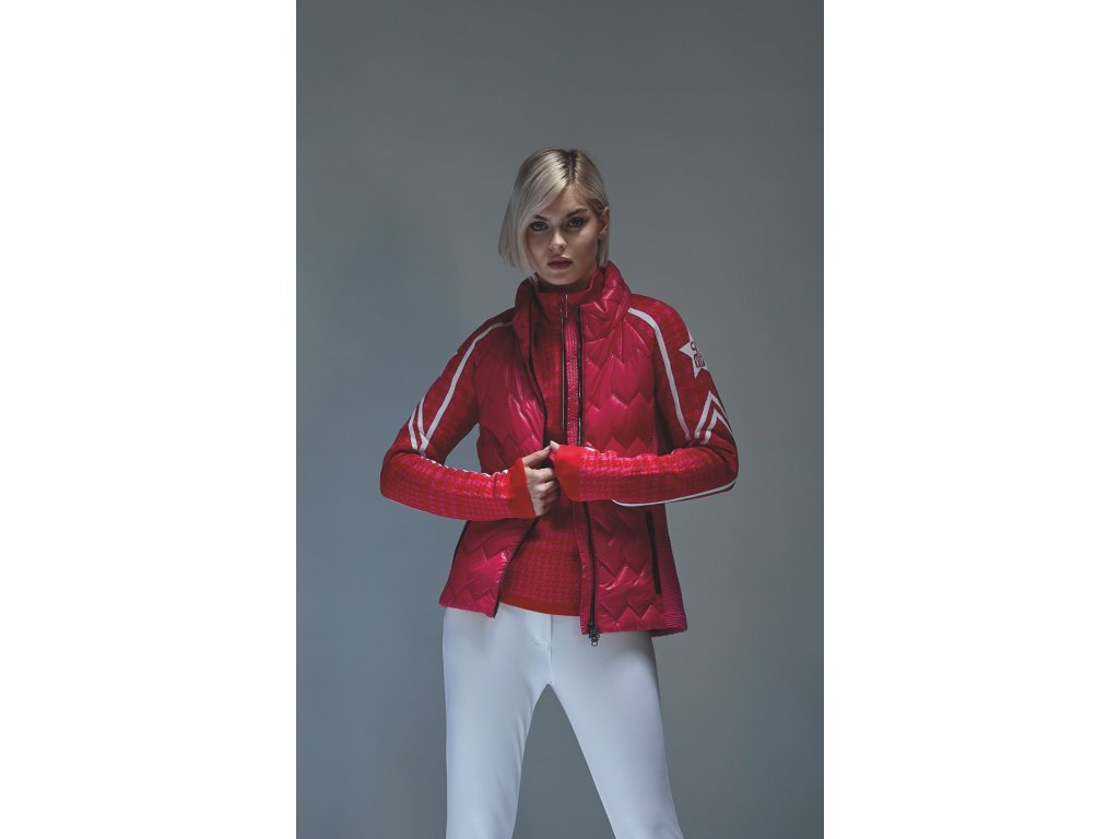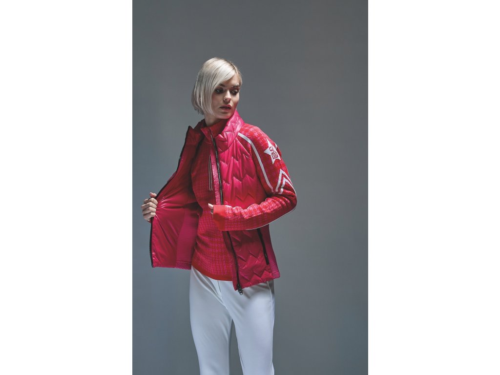 Výrazné rukávy zdobí ikonický jacquard SKI VIP v technologii DHtech 400, který dodává kousku nadčasový a zároveň trendy ženský vzhled.