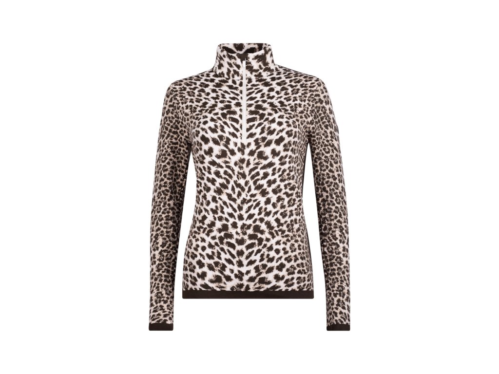 Technicky vyspělý a stylový dámský midlayer s půlzipem a exkluzivním Snow Leopard jacquardem pro dokonalou termoregulaci a sportovní eleganci.
