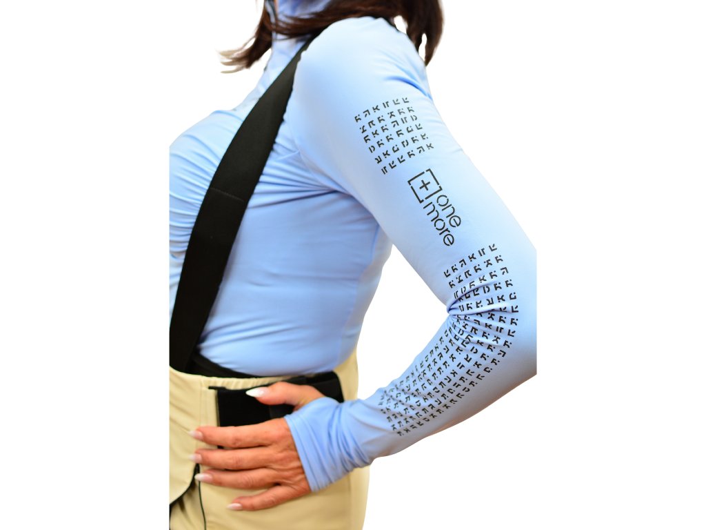 Potisk části Manifestu v unikátní abecedě OneMore podél rukávů dodává oděvu osobitost a jedinečný styl.