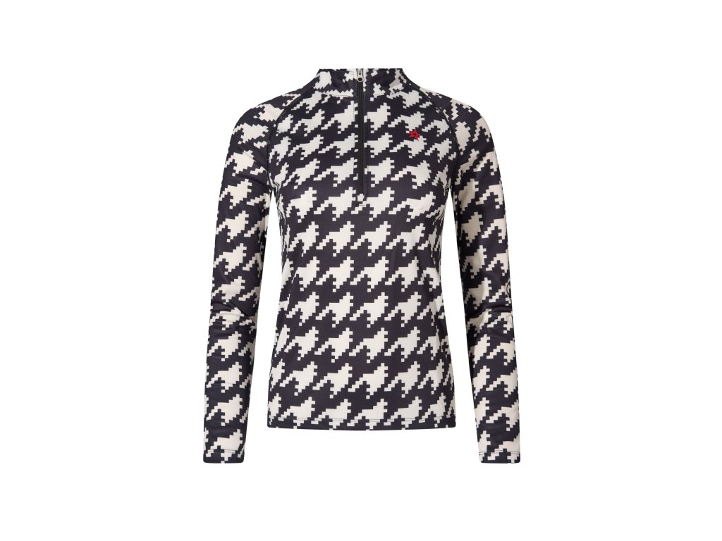 PERFECT MOMENT 1/4 ZIP BASE LAYER TOP B&W HOUNDSTOOTH