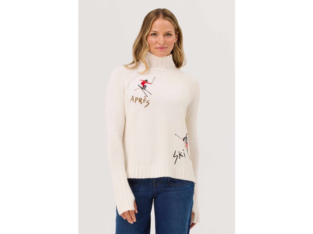 Světlý zimní svetr ve sněhově bílé barvě pro jemný a sofistikovaný après-ski look.