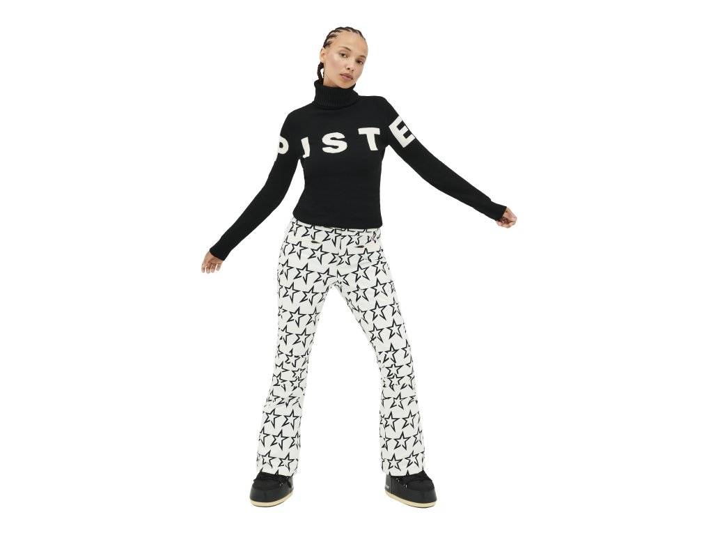 Vlastnnosti: | • Vypasovaný s délkou na boky • Rolák • Dlouhé rukávy s žebrovanými manžetami • Žebrovaný lem • Intarziová pletenina „Piste“ uprostřed přední části |