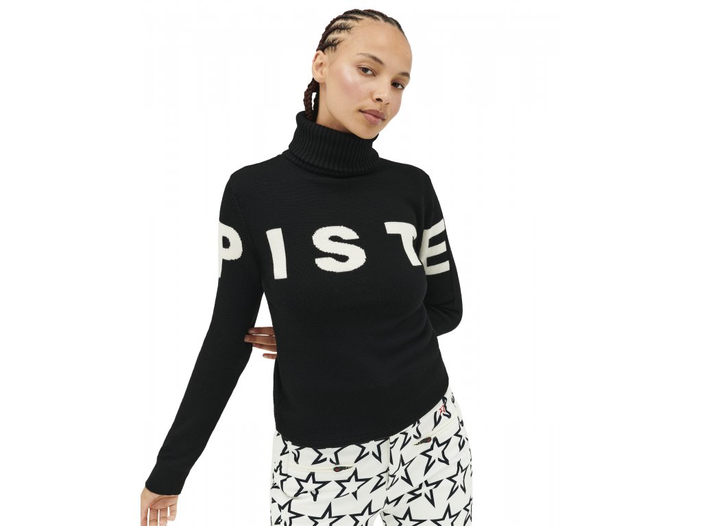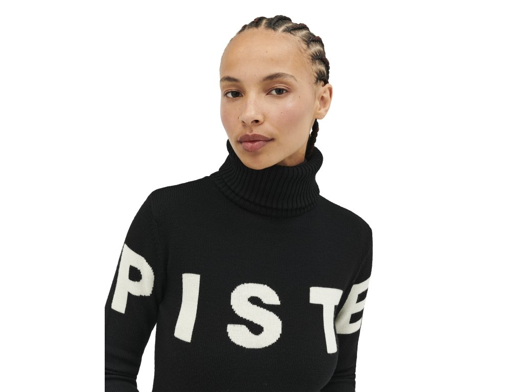 Tento rolák s dlouhým rukávem PERFECT MOMENT PISTE SWEATER II BLACK je vyrobený z merino vlny s certifikací Woolmark, s intarzií „Piste“ uprostřed vpředu.