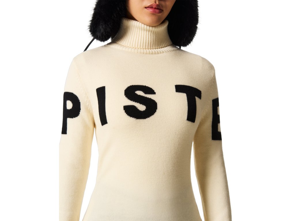| Vlastnosti: | • Vypasovaný s délkou na boky • Rolák • Dlouhé rukávy s žebrovanými manžetami • Žebrovaný lem • Intarziová pletenina „Piste“ uprostřed přední části |