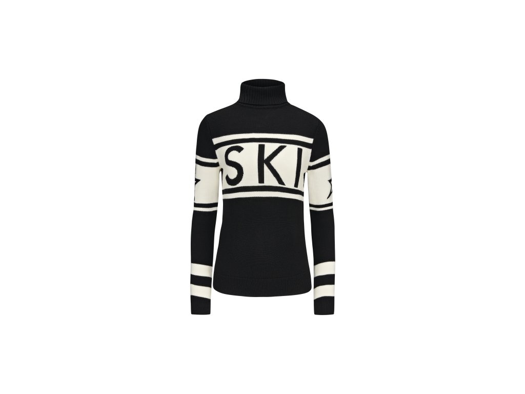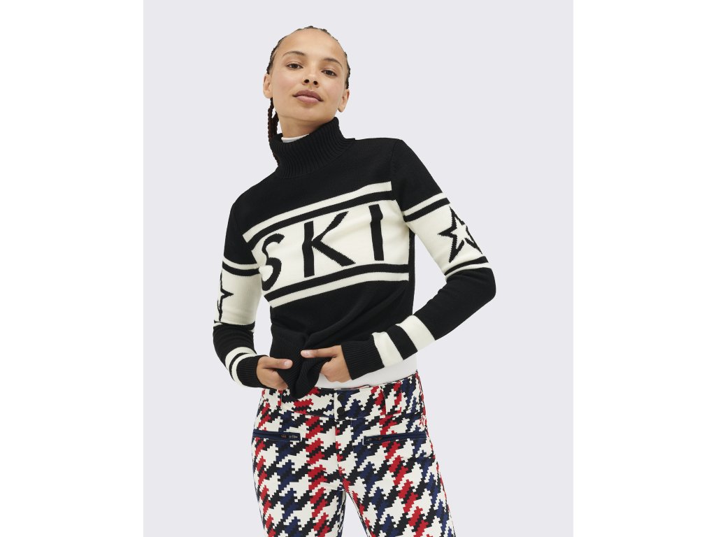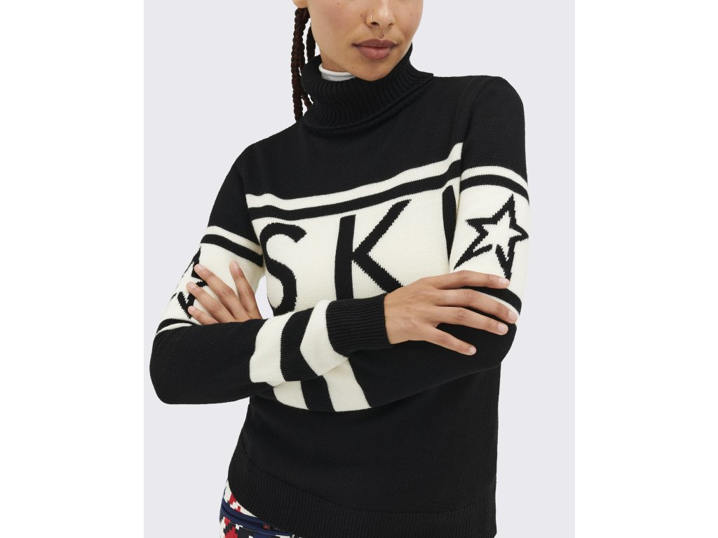 Vlastnosti: | • Vypasované s délkou na boky • Rolák • Dlouhé rukávy s žebrovanými manžetami • Žebrovaný lem • „SKI“ intarziová pletenina uprostřed přední části |