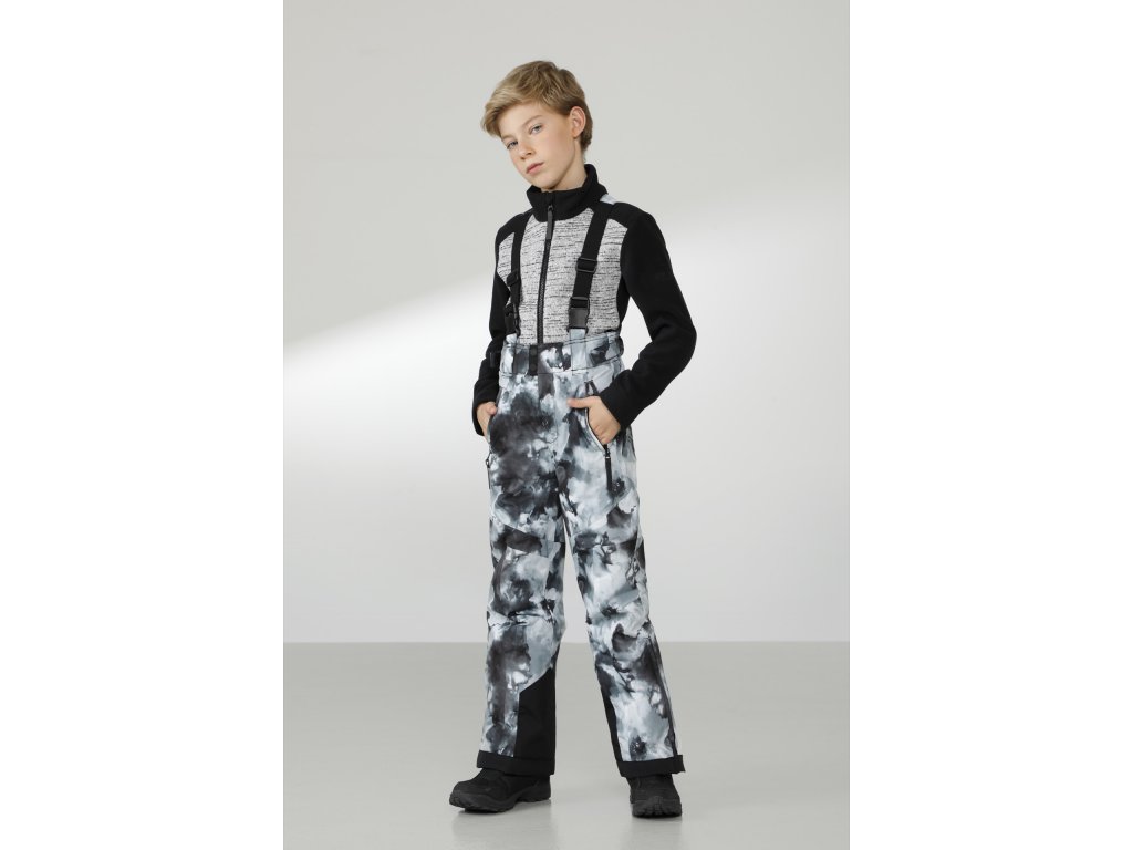 Chlapecké zateplené lyžařské kalhoty POIVRE BLANC W22-0922-JRBY SKI BIB PANTS s kšandami a vyvýšenou bederní částí. Kloubová kolena, regulace pasu pomocí gumy a suchých zipů, zipové kapsy na ruce jsou podstatnými technickými detaily. Spodní část nohavice je na zip pro snazší obutí přezkáčů s možností regulace šířky. Vnitřní nohavici zabraňující proniknutí sněhu a zesílené vsadky v oblasti kotníků pro delší životnost.
