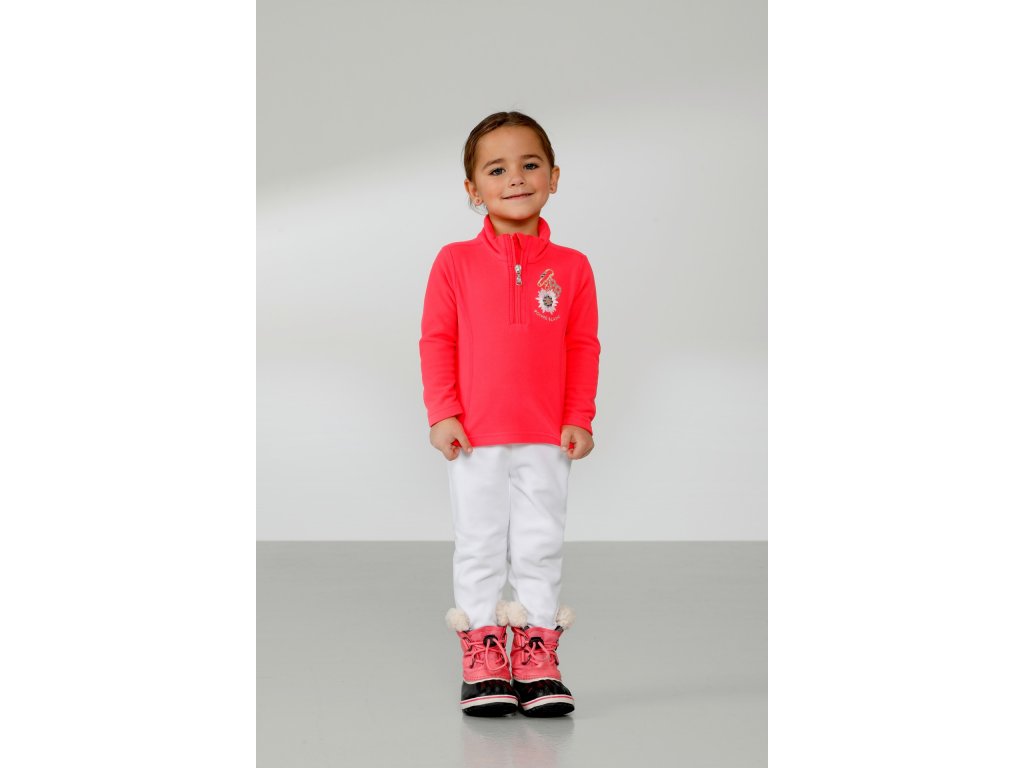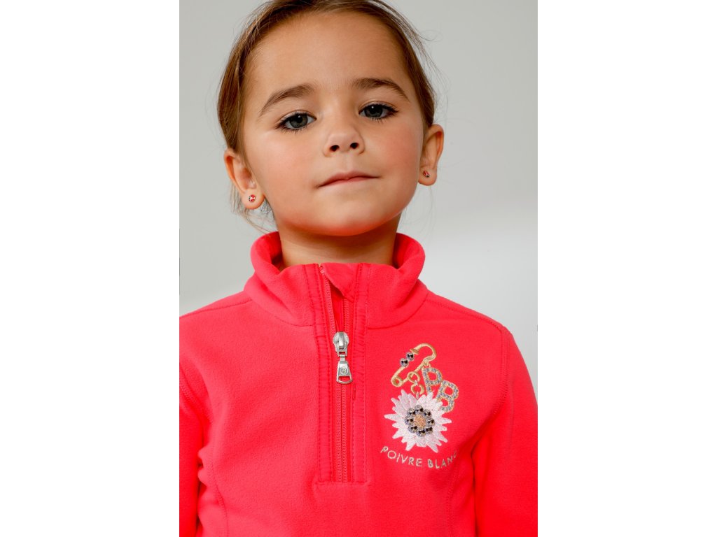 Dívčí fleecová mikina - rolák POIVRE BLANC W22-1540-BBGL MICRO FLEECE JACKET pro malé lyžařky má typickou detailně zpracovanou výšivku. Použitý mikrofleece je extrémně příjemný, strečový a pohodlný. Podél předního YKK zipu je estetická vsadka, mikina má vyšší límec do stojáčku s chráničem brady a logo.