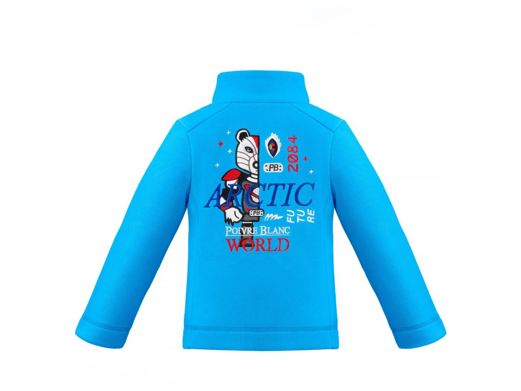 Chlapecká mikina POIVRE BLANC W21-1510-BBBY/A MICRO FLEECE JACKET z měkkého čtyřsměrného oboustranného fleecu pro ty nejmenší lyžaže s typickou výšivkou na zádech. Mikina má zip po celé délce a je spolehlivou druhu vrstvou.