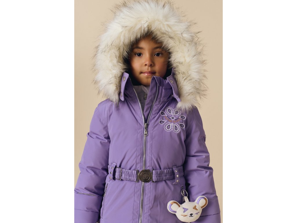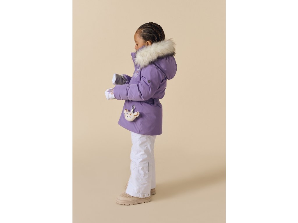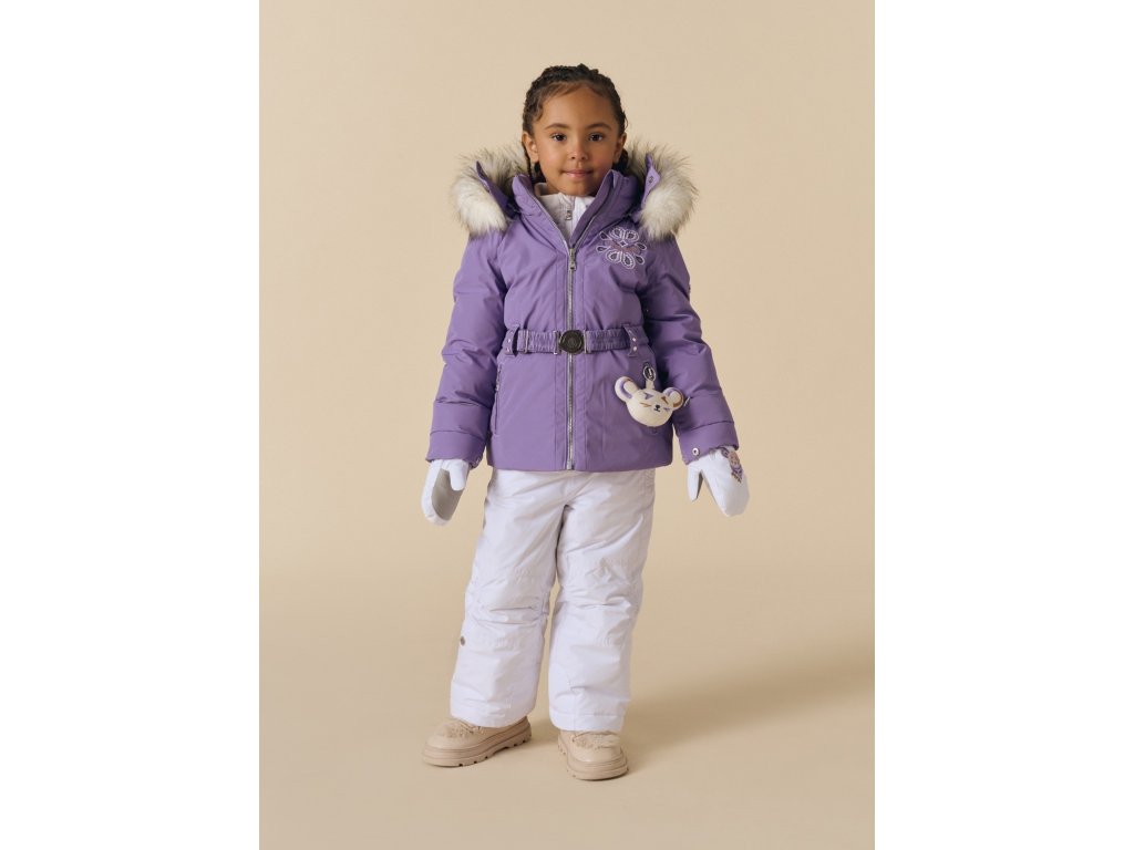 Dětská lyžařská bunda Poivre Blanc June-BBGL v něžném odstínu levandulové kombinuje funkčnost a kouzelný design, který si zamiluje každá malá lyžařka. Iridescentní tkanina vytváří nádherný lesk na denním světle, zatímco ikonická výšivka na zádech – společná pro bundu, kombinézu Joyce-BBGL, mikinu Ruby-BBGL i palčáky Mimi-BBGL – dodává outfitu jednotný, pohádkový vzhled.