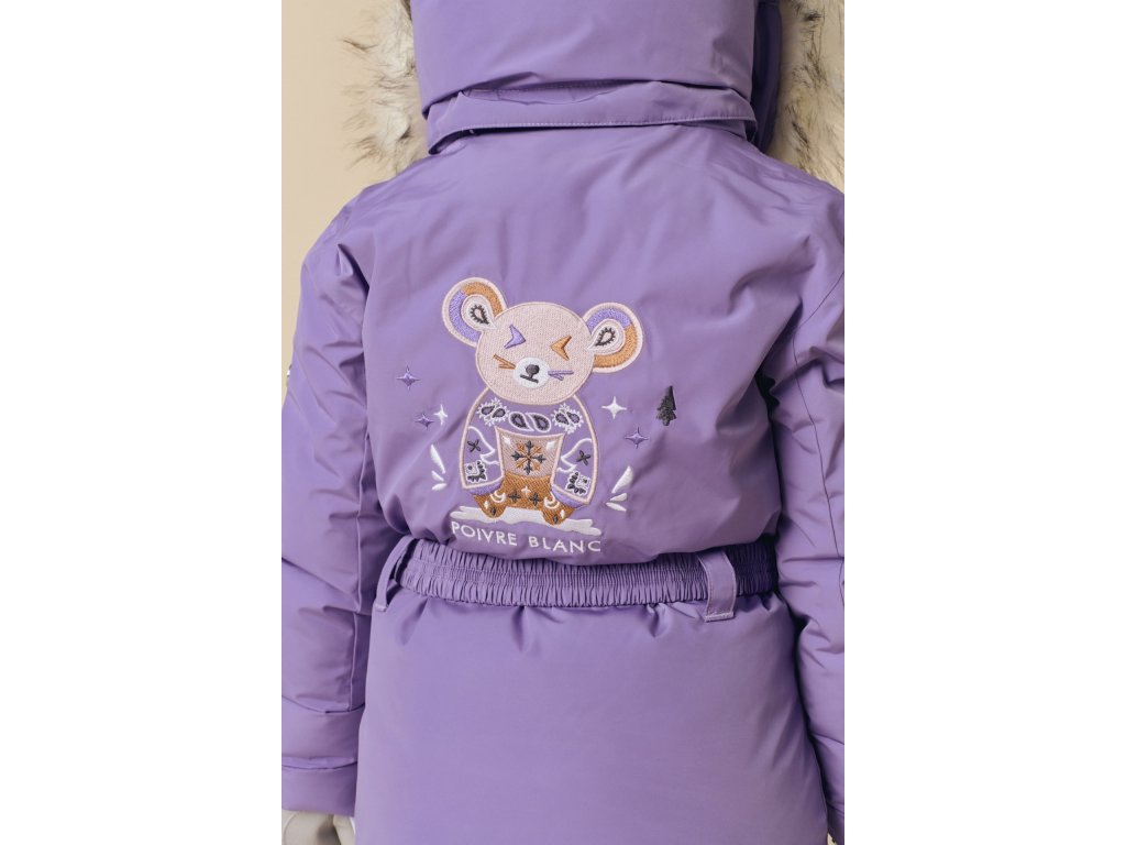 Dětská zimní bunda s hřejivou výplní a výraznou výšivkou ikony Poivre Blanc na zádech.