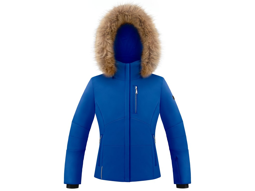 Dívčí strečová lyžařská bunda s kapucí a kožešinou