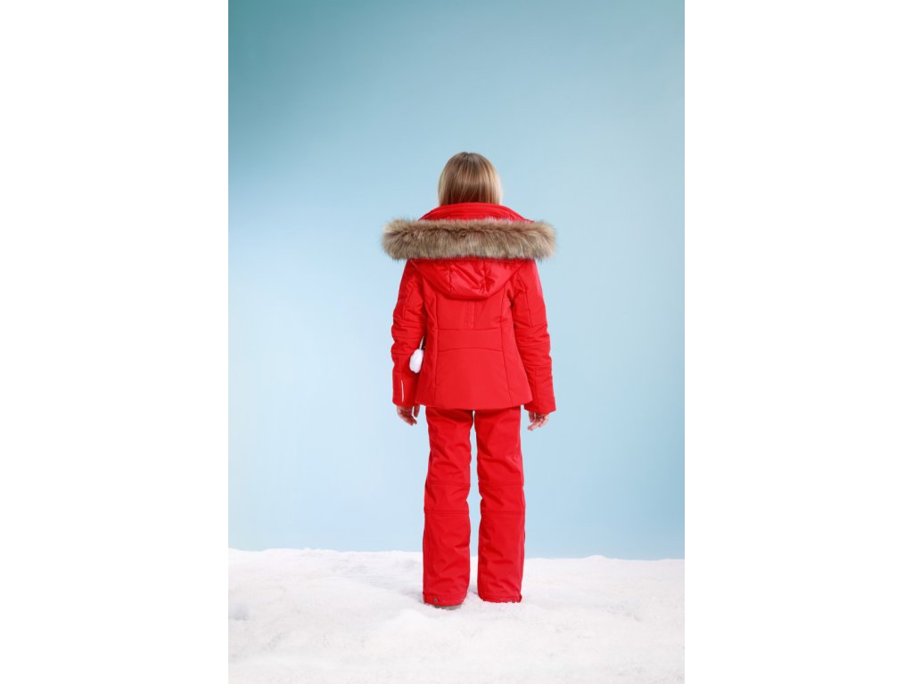 Dívčí strečová lyžařská bunda s kapucí a kožešinou