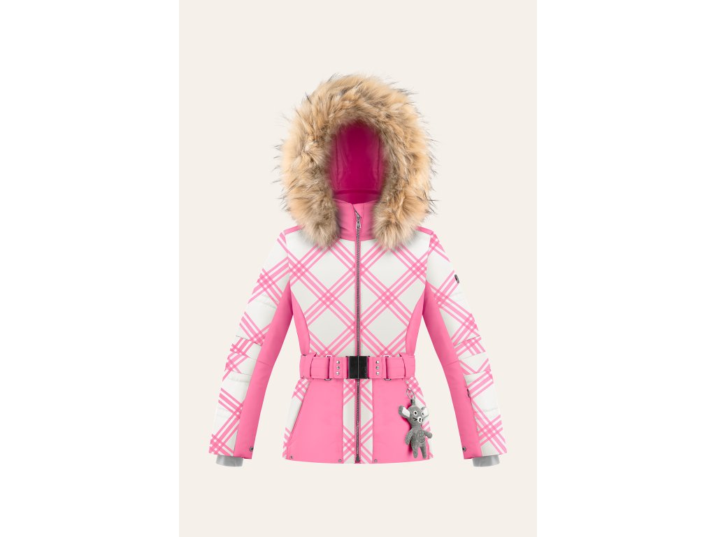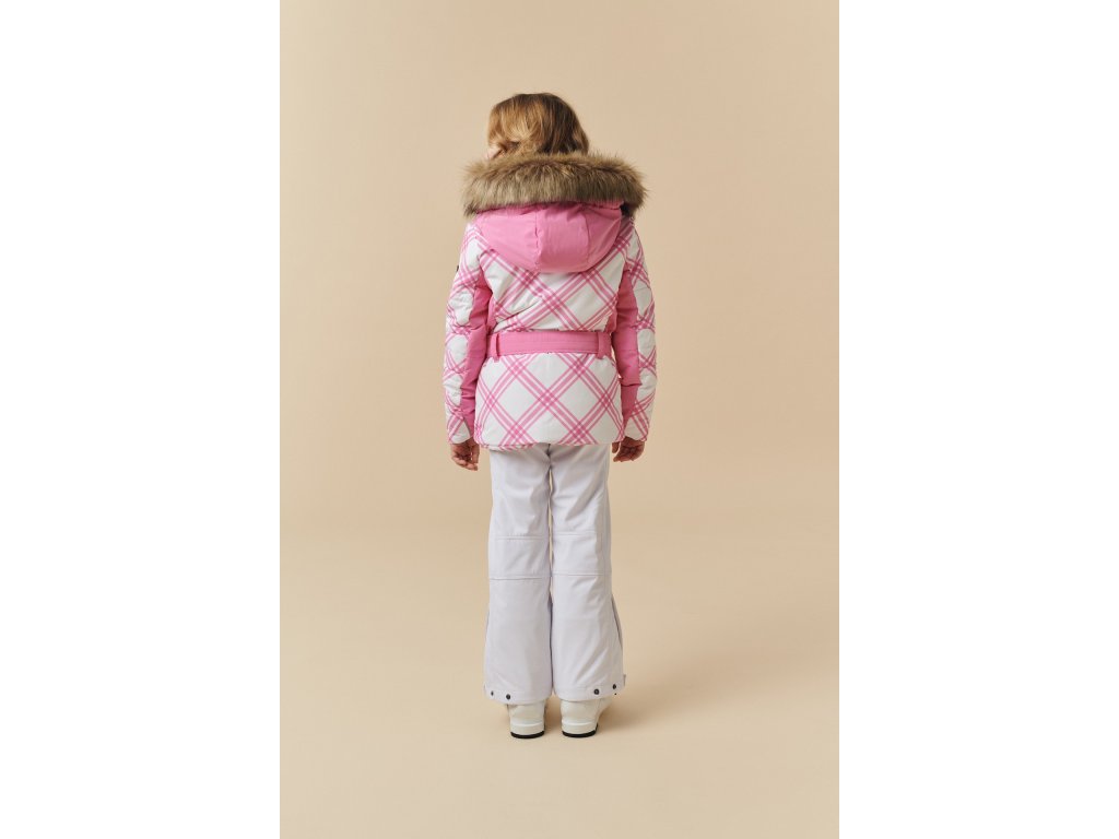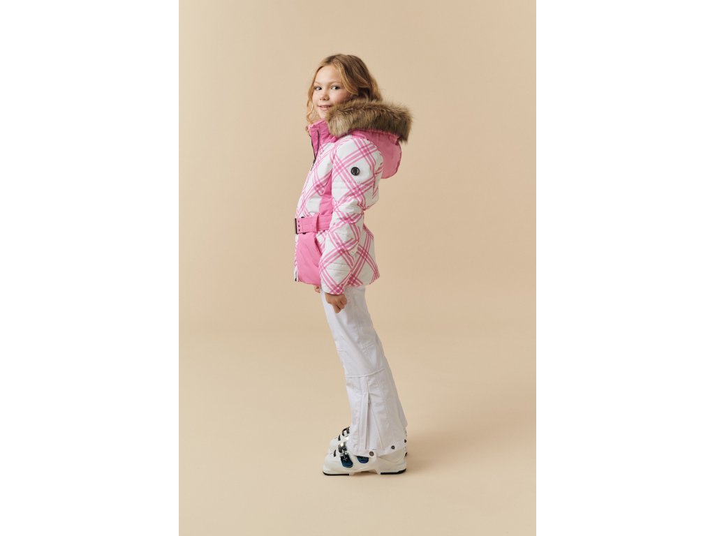 Dívčí lyžařská bunda s páskem a kapucí s kožešinou
