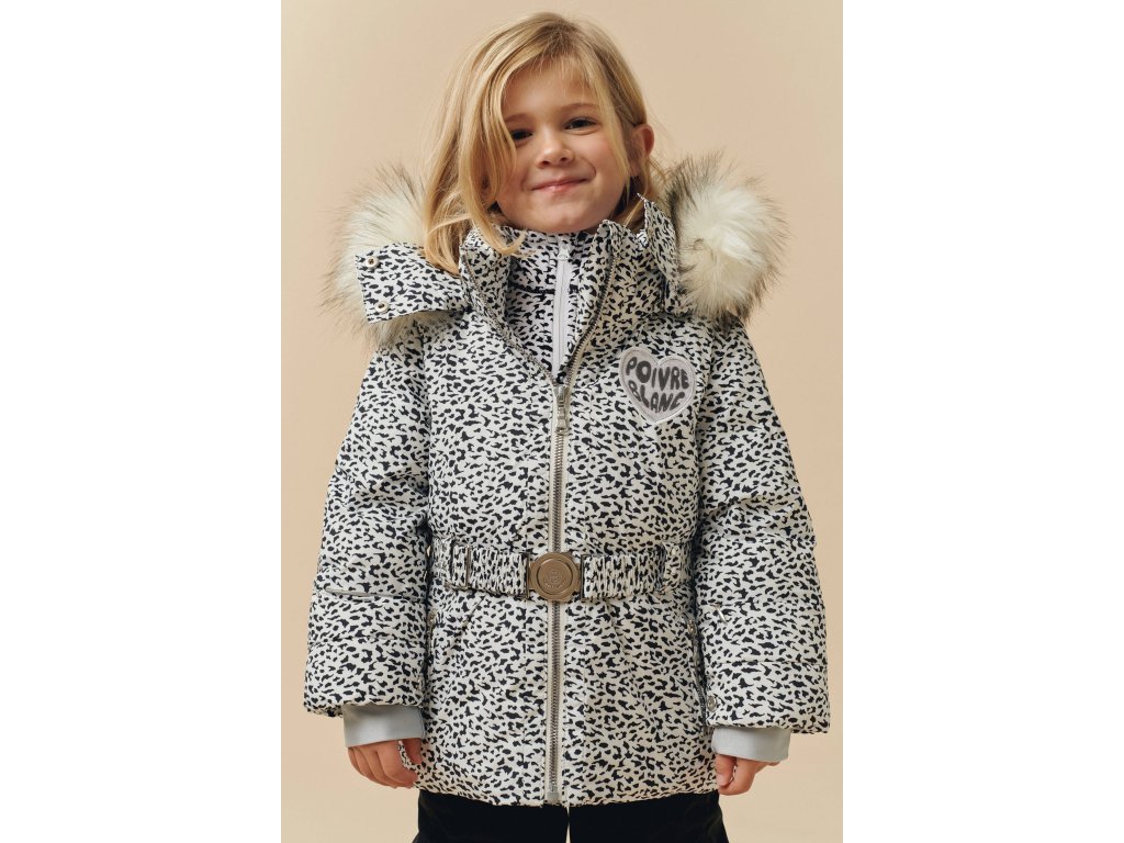Dívčí verze zimní bundy POIVRE BLANC W24-1201-BBGL SYNTHETIC DOWN SKI JACKET je lyžařská bunda z celoplošně potištěné laminované látky v designu jaguára. Bunda je voděodolná, prodyšná, vodoodpudivá a o tepelný komfort se postará loftové polstrování.
