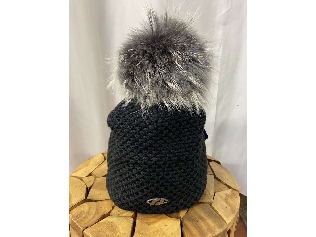 R-Jet čepice je zdobená decentním kovovým logem, pravou kožešinovou odepínací bambulí.