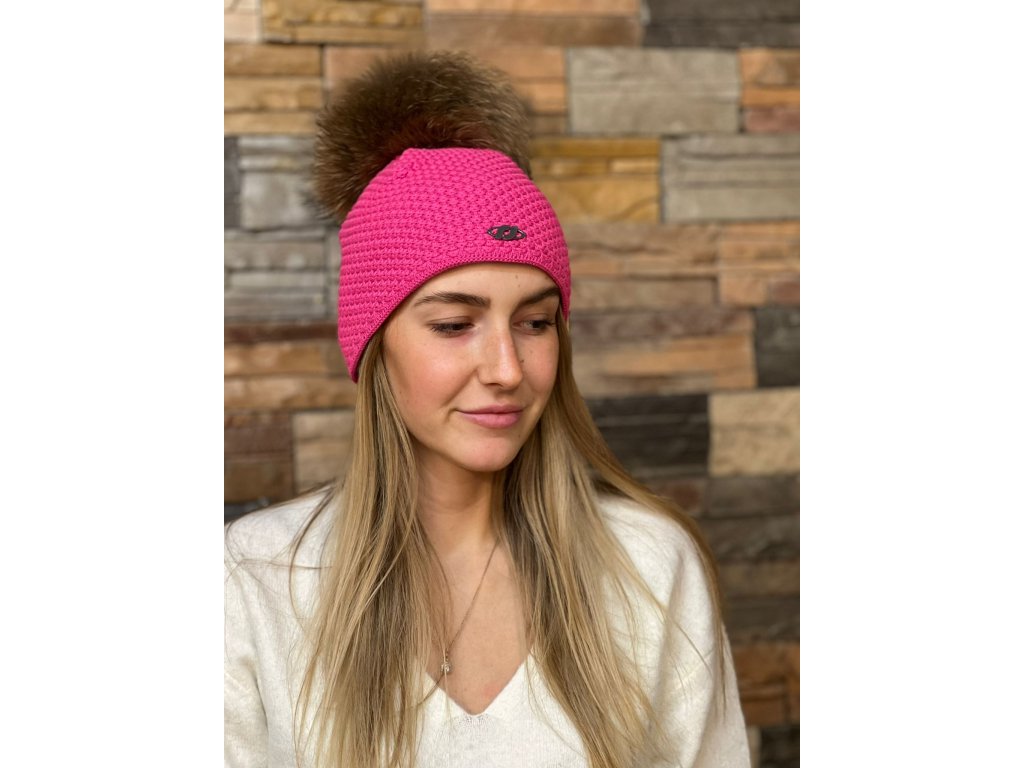Dámská pletená čepice s kožešinovou bambulí
