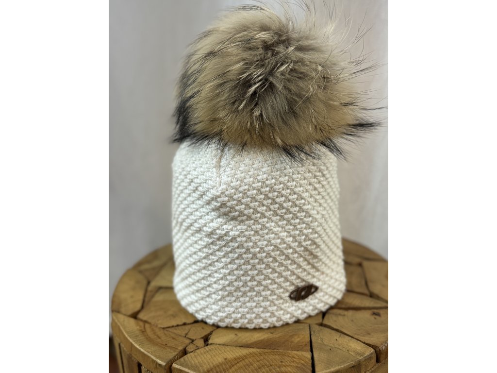 R-Jet čepice je zdobená decentním kovovým logem, pravou kožešinovou odepínací bambulí.