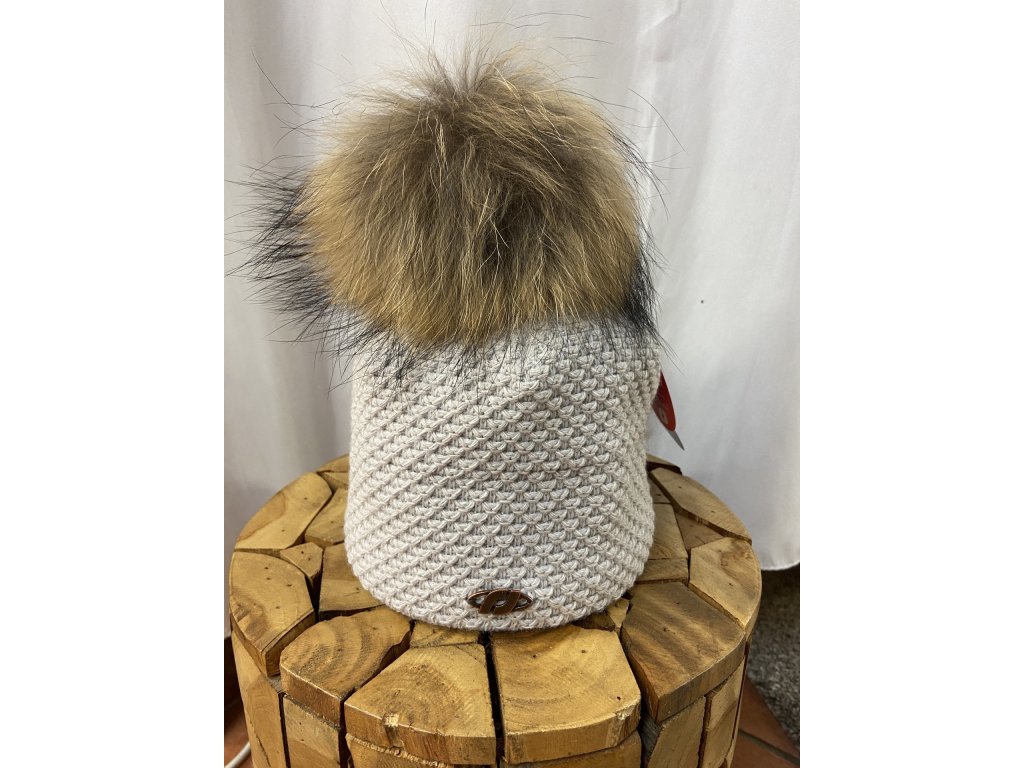 R-Jet čepice je zdobená decentním kovovým logem, pravou kožešinovou odepínací bambulí.