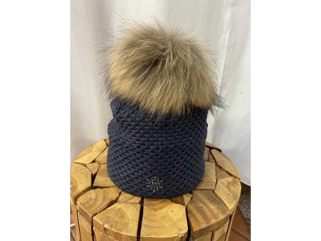 Dámská vlněná čepice s kožešinovou bambulí, zdobená Swarovski komponenty