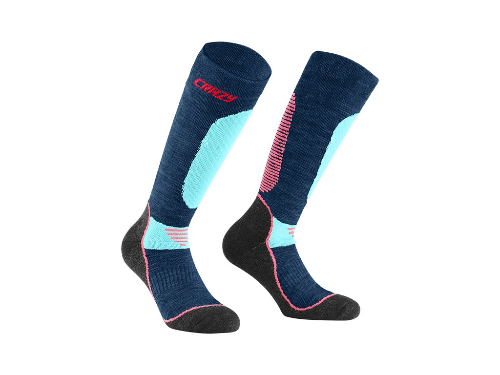 Teplé vlněné ponožky CRAZY WOOL SOCKS s lehkou, pozvolnou kompresí se hodí jak na alpské lyžování, tak i na vysokohorskou turistiku v chladných podmínkách.