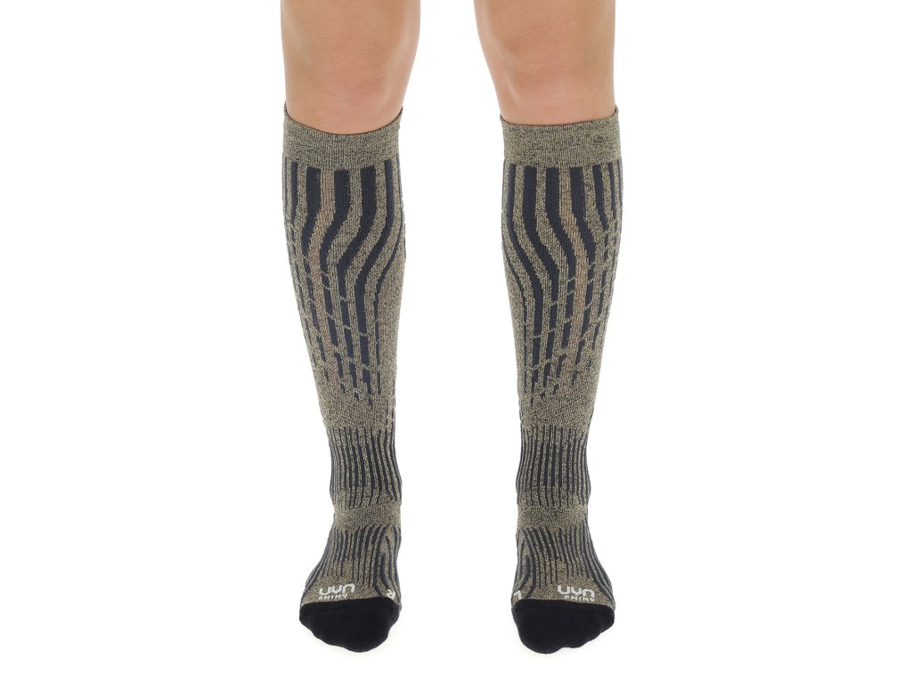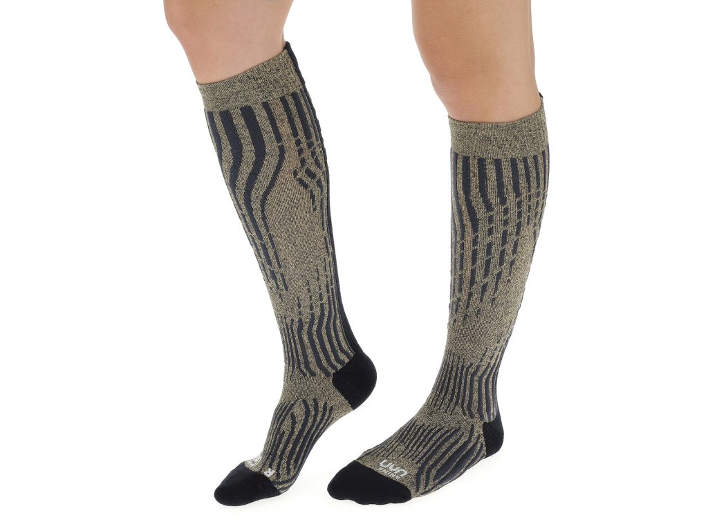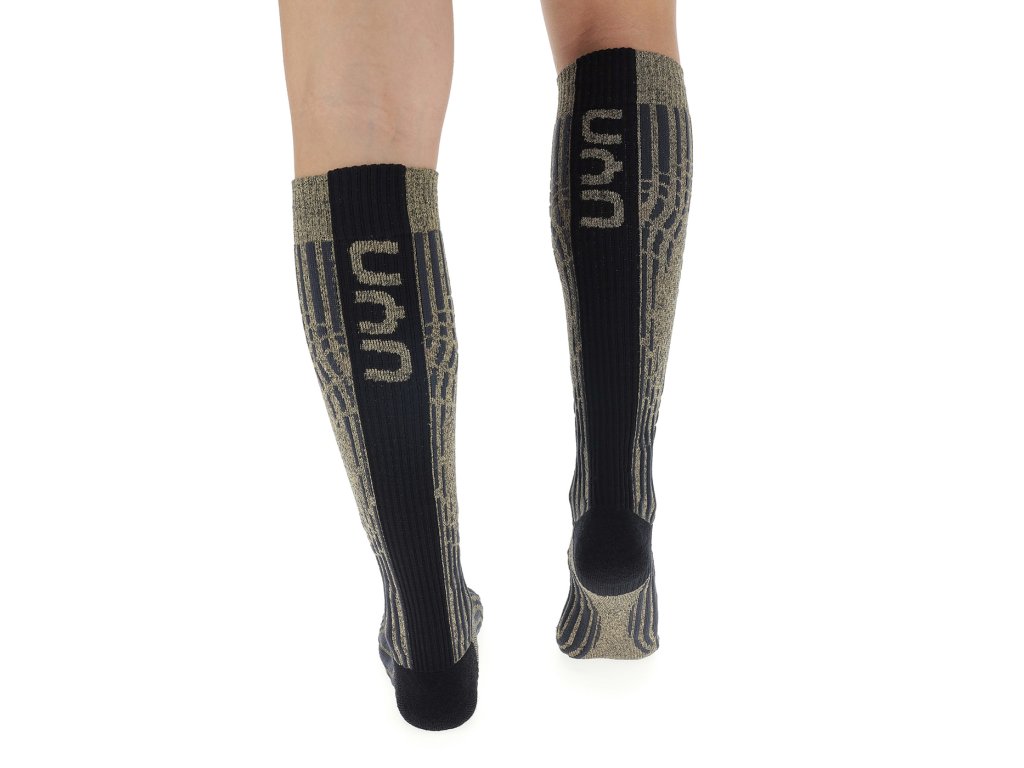 Dámské lyžařské podkolenky UYN SKI CASHMERE SHINY SOCKS ve kterých se blýsknete nejen z blízka. Tyto třpytivé ponožky dokážou ještě mnohem víc! Interakce vysoce funkčních materiálů zajišťuje jedinečné klima nohou a nejvyšší pohodlí při nošení: Natex, vlna Merino a Kašmír zaručují suché nohy, měkký pocit a dokonalou prodyšnost. Speciální pletené struktury poskytují ochranu před nárazy a otlaky.