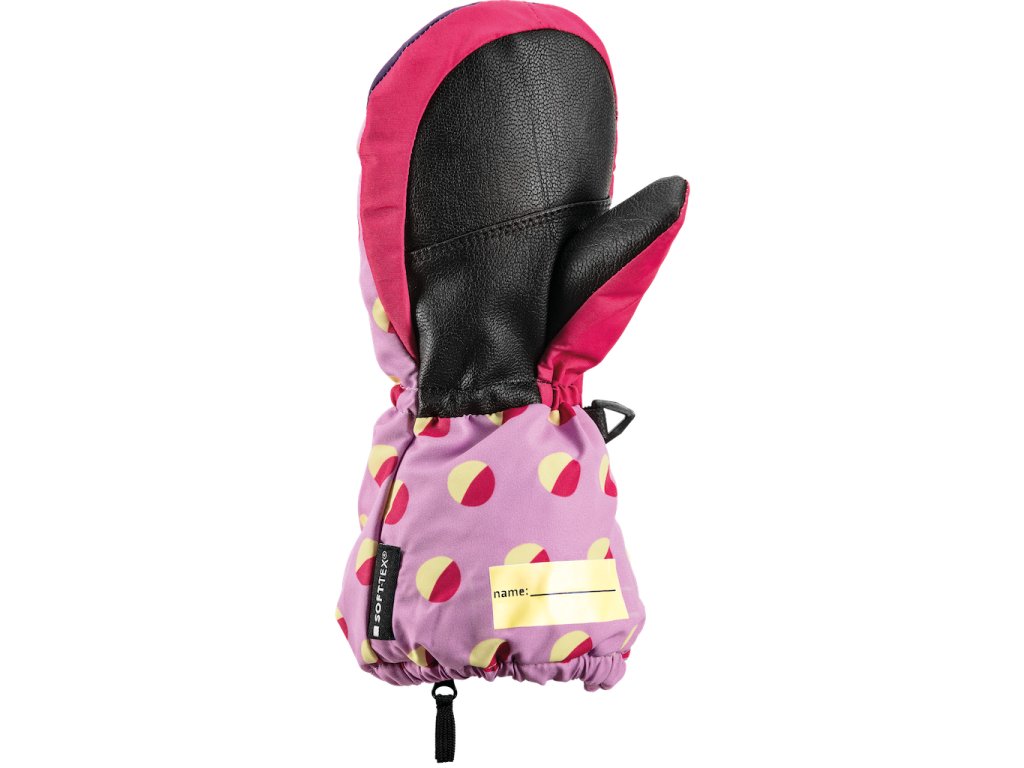 Dětské palčáky s motivem tlapky v hravé dívčí kombinaci, s dlouhou manžetou, teplou výplní a voděodolnou membránou SOFT-TEX® pro bezstarostné zimní radovánky.