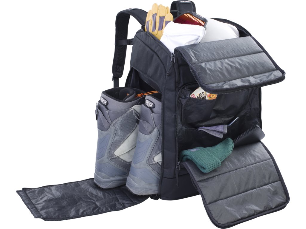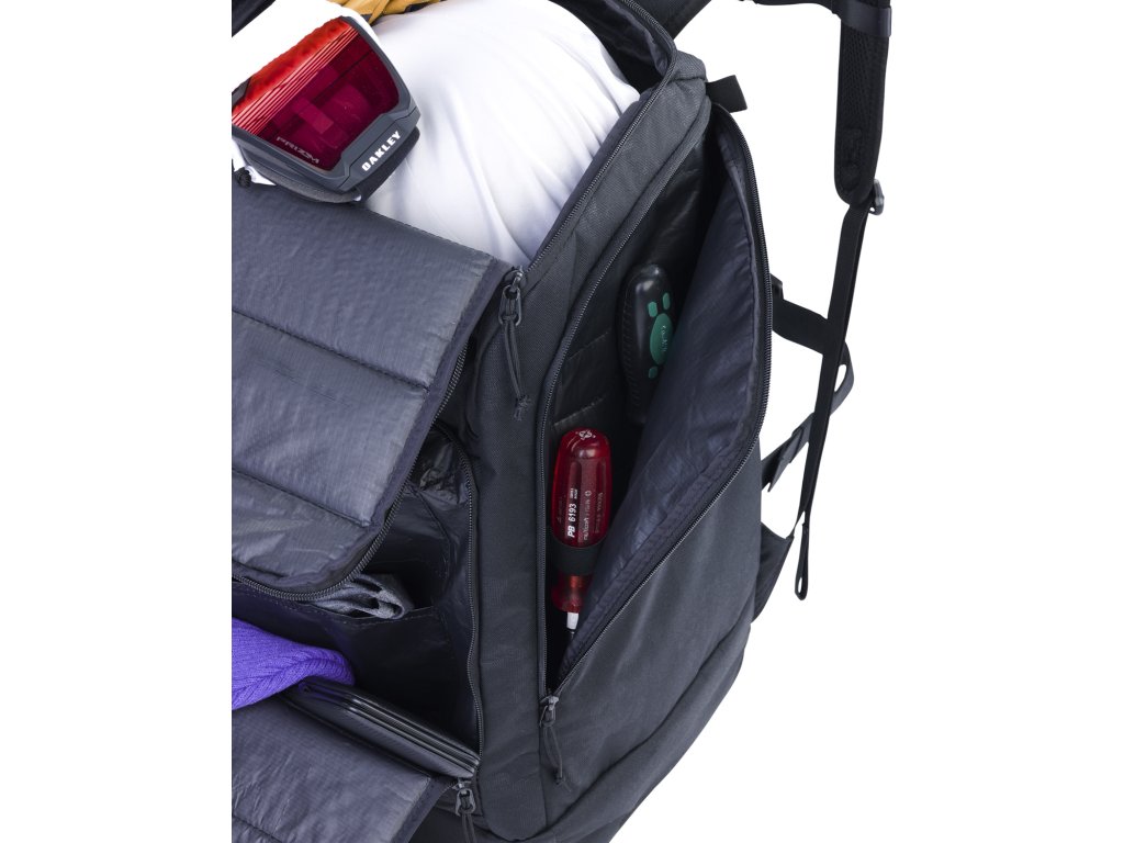 Oddělené komory: Udržujte helmu, boty a další výbavu čistě oddělené – ventilované části navíc zabraňují zápachu a vlhkosti.
