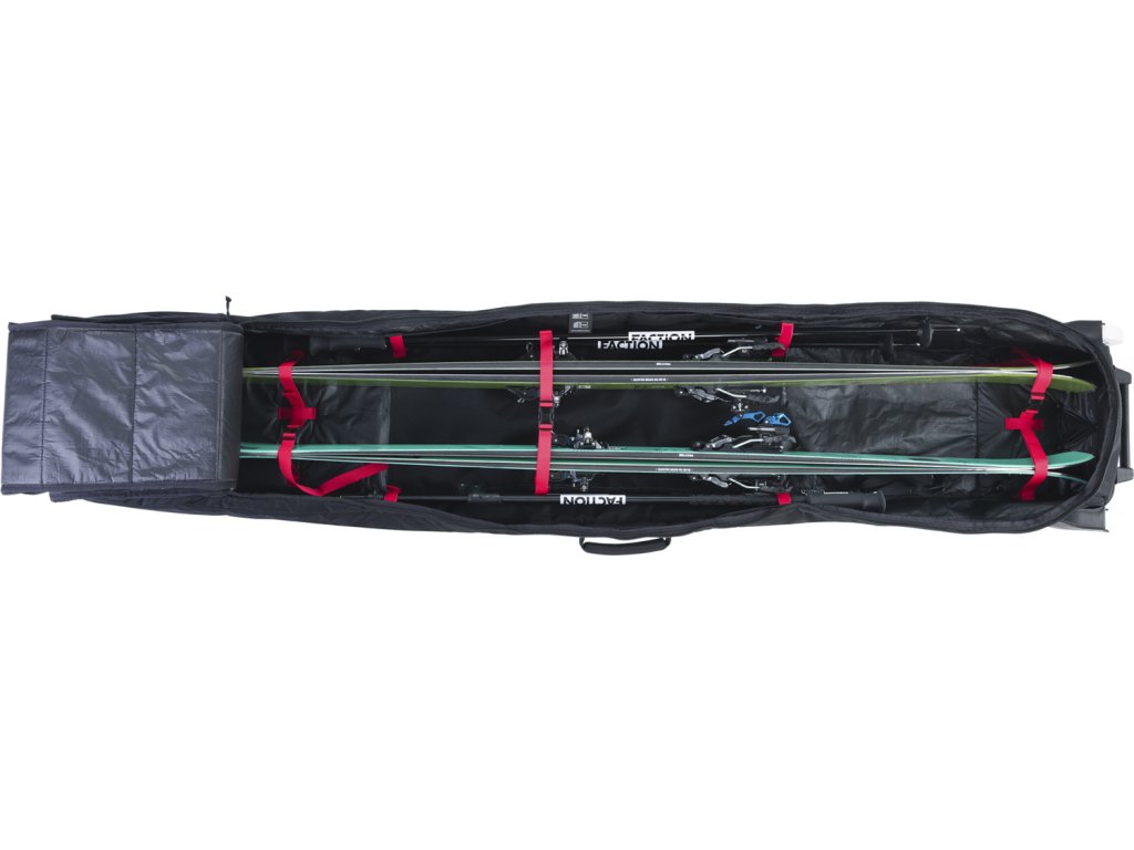 Klíčové vlastnosti: Kapacita až 2 páry lyží + hole. Ideální pro kratší nebo slalomové modely. Lehký a odolný materiál P600D PU s voděodolným zátěrem bez PVC. Plynulá kolečka usnadní transport bez námahy i na delší vzdálenosti. Vnitřní kompresní systém – výbava je stabilní a chráněná proti poškození. Skladný design. Prázdný obal snadno sroluješ a uložíš.