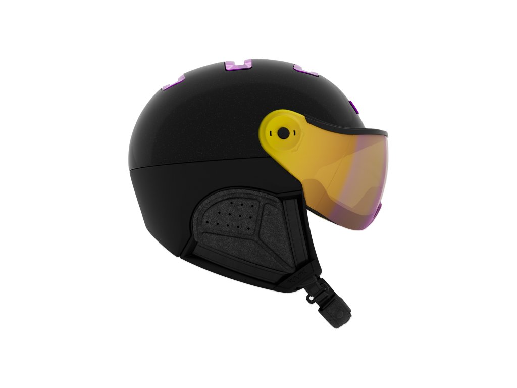 Jednoduchý a čistý design s chromovými prvky představuje lyžařský helma KASK PIUMA R Chrome. Integrovaný, antikorozní a zrcadlový štít, který poskytuje panoramatický výhled je samozřejmostí. Dvoustěnný zrcadlový zorník má antifog a antiscratch úpravu a poskytuje dokonalý panoramatický výhled.
