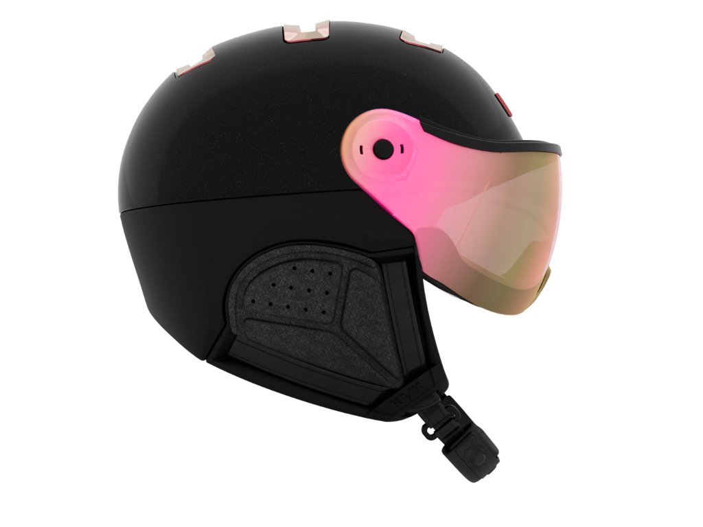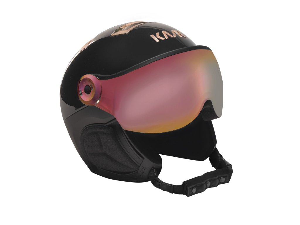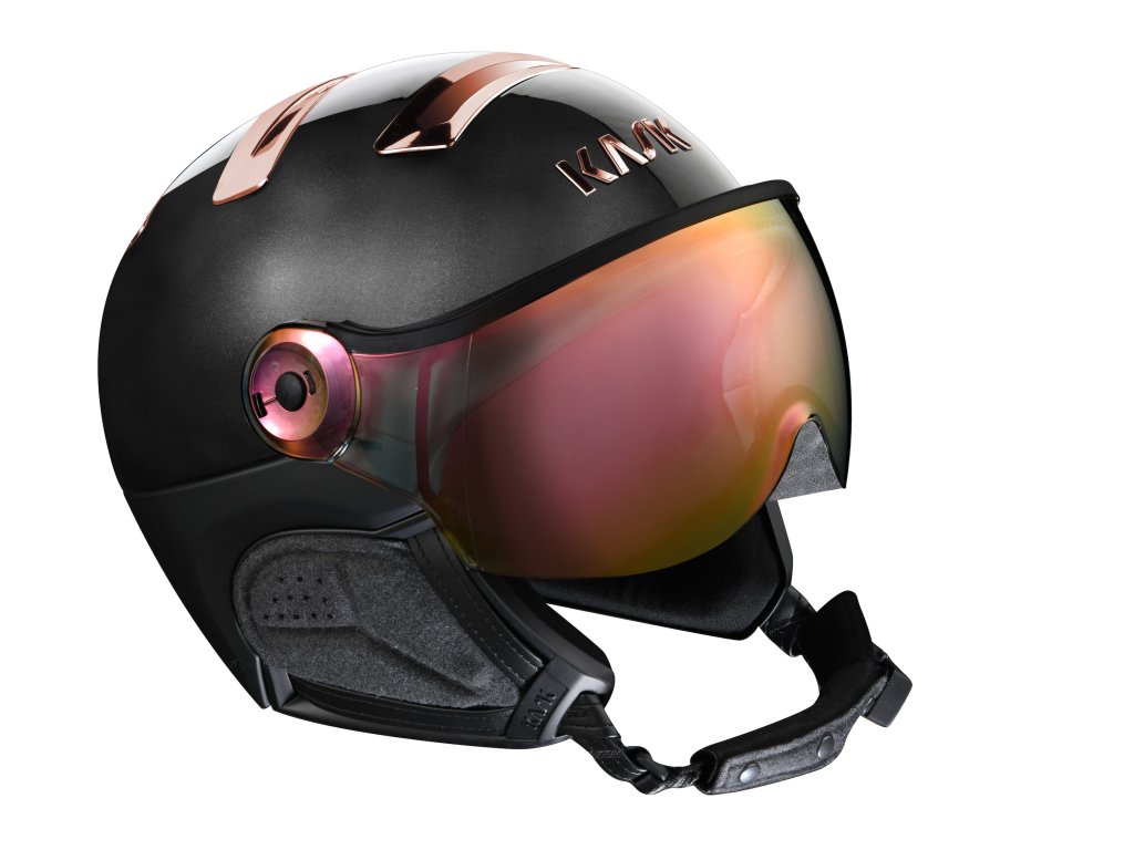Jednoduchý a čistý design s chromovými prvky představuje lyžařský helma KASK PIUMA R Chrome. Integrovaný, antikorozní a zrcadlový štít, který poskytuje panoramatický výhled je samozřejmostí. Dvoustěnný zrcadlový zorník má antifog a antiscratch úpravu a poskytuje dokonalý panoramatický výhled.
