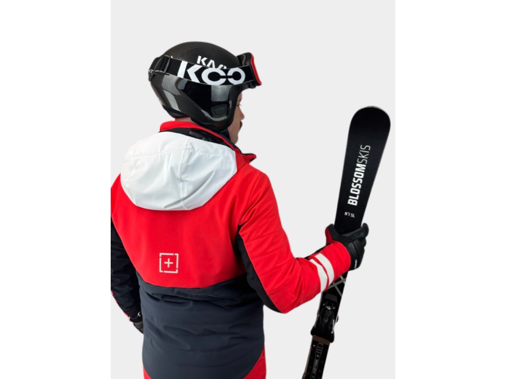 Bunda má elegantní slim fit střih, který zdůrazňuje sportovní siluetu a zároveň umožňuje volný pohyb během lyžování.
