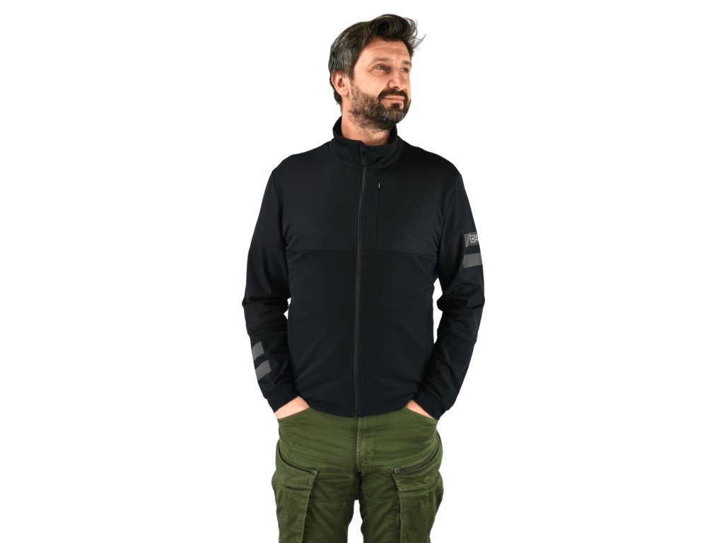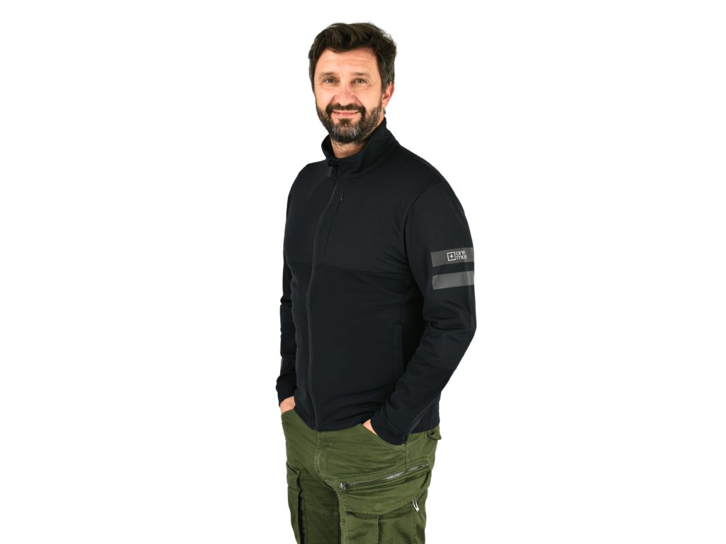 Pánský technický svetr z fleecu ECONYL® s vysokým límcem, kapsami se zipy a reflexním logem.