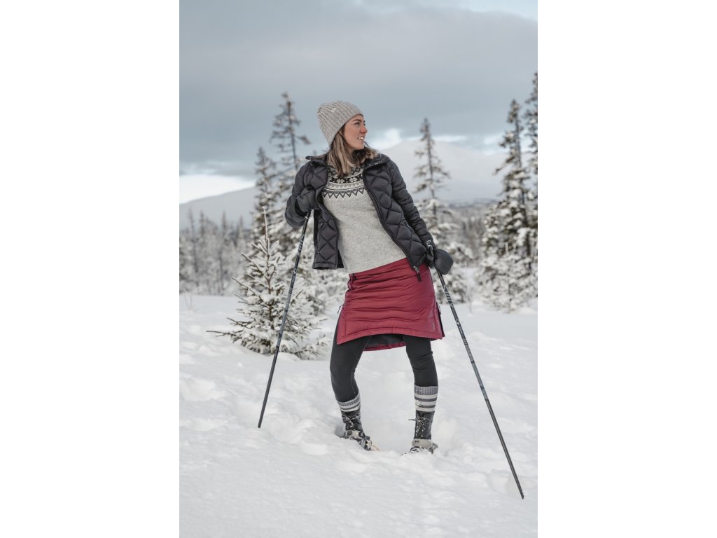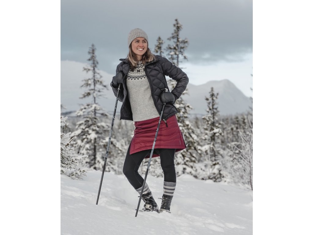 Pokud máte v zimě stále promrzlé nohy, je naše péřová sukně SKHOOP SHORT DOWN SKIRT přesně pro vás. Sukně má praktickou délku, kterou oceníte nejenom při běžném nošení, ale především při zimních sportech. Sukně má na pravé straně dvoucestný zip, díky kterému můžete sukni rozepnout po celé její délce a snadno nasadit na vaše oblíbené lyžařské kalhoty. Na levé straně se pak nachází kratší zip, který umožní vytvoření vhodného rozparku, který oceníte například na bežkách či skialpech. V pase se nachází poutka pro případné uchycení pásku a v zadní části je sukně stažena do elastického gumy, která zajistí, že sukně nebude odstávat a nebude vám foukat na záda. Po stranách jsou samozřejmostí kapsy, které jsou opatřeny zipem. Buďte za hvězdu a vyražte do zimy v naší péřové neprofoukavé, vodoodpudivé s DWR impregnací - environmentally friendly, PFOA-free sukni Short Down.
