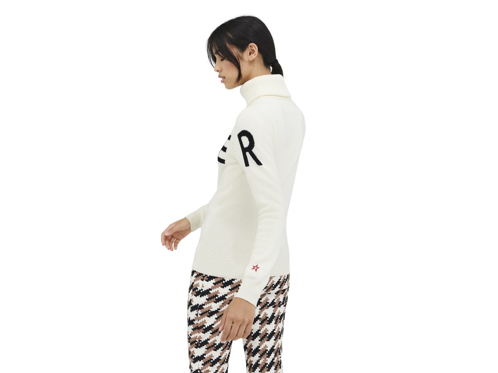 Tento rolák s dlouhým rukávem PERFECT MOMENT POWDER SWEATER II SNOW WHITE je vyrobený z merino vlny s certifikací Woolmark, s intarzií „Piste“ uprostřed vpředu.